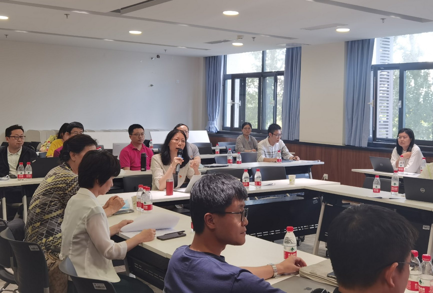 党委常委、副校长毕天姝带领全体人员研讨党建业务融合的高效推进机制。她通过分享了自己前年在中央党课学习的经历,说明在人的精神中最重要的是党组织。她引用毛主席提出的理论“支部建在连上”,指出在这个时间紧任务重要求高的重大科研攻关任务中,发挥三个单位不同党支部的作用,在项目过程中用党组织的力量和精神与思想政治作用,进一步激发活力。