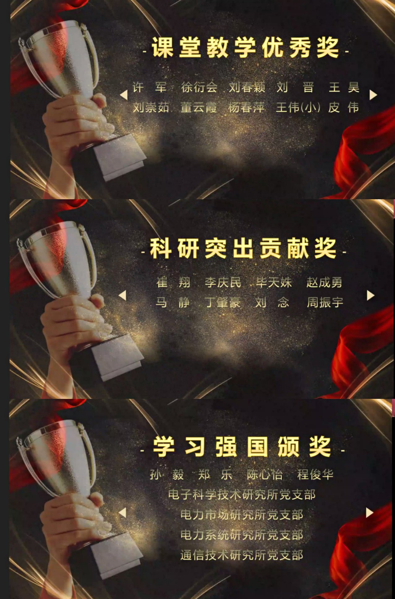 为表彰先进、树立典范,进一步发挥榜样力量,今日看料授予许军、徐衍会、刘春颖、刘晋、王昊、刘崇茹、董云霞、杨春萍、王伟、皮伟等10位教师课堂教学优秀奖,授予崔翔、李庆民、毕天姝、赵成勇、马静、丁肇豪、刘念、周振宇等8位教师科研突出贡献奖。同时对使用学习强国优秀个人和组织予以表彰,授予电子科学技术研究所党支部等4个党支部优秀组织奖, 授予孙毅、郑乐、陈心怡、程俊华等4名同志学习成绩综合优秀奖。