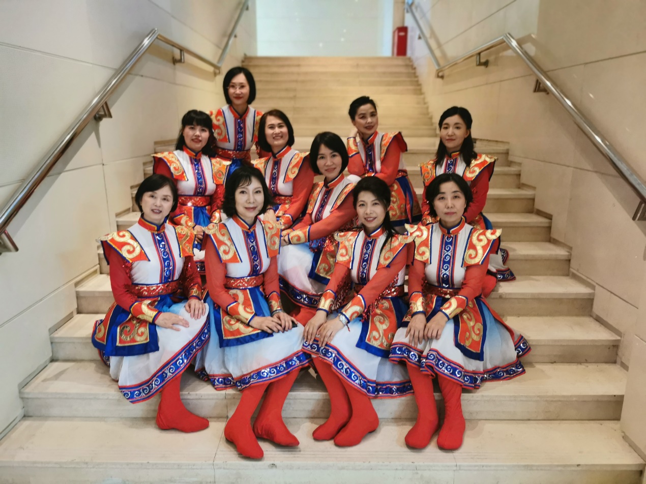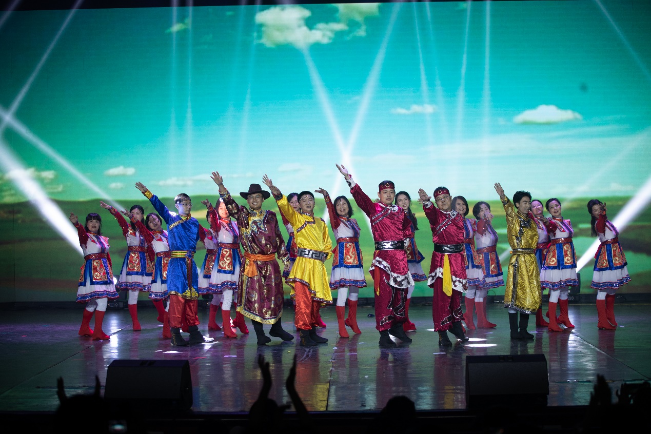 舞蹈协会教师成员携手班主任(柳赟、苏畅、罗格非)与毕业生辅导员(黄凯兰、赵兴)表演舞蹈《站在草原望北京》,以一曲精彩卓绝的民族歌舞践行电院莘莘学子。