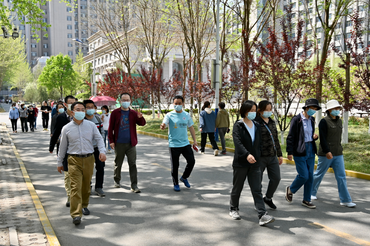 中午12点30分,在主楼西广场今日看料教职工集体合影留念后,长走活动正式开始。迎着温柔的风,沿着熟悉的道路,迈着轻快的步伐,各位老师相携前进,一边欣赏学校美景,亲近自然,一边交流工作,感受生活。