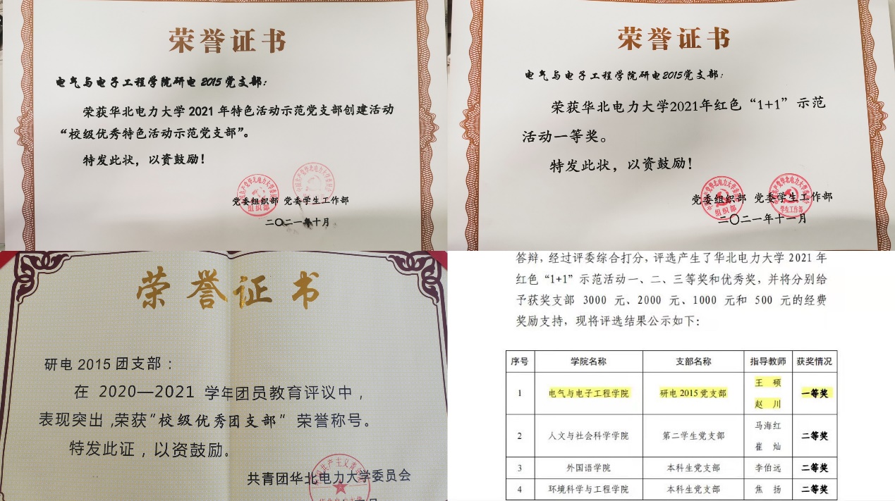 1月18日,北京市委教育工委公布了2021年北京高校红色“1+1”示范活动结果,经各校推荐、专家初评、现场复评确定等环节,我院研电2015党支部从北京高校1300多个学生党支部中脱颖而出,荣获2021年北京高校红色“1+1”示范活动一等奖,这也是我校时隔6年后,再次获得北京高校红色“1+1”示范活动一等奖。