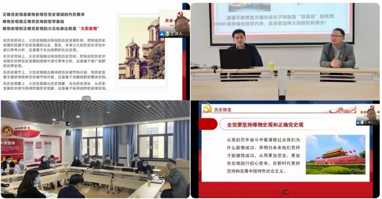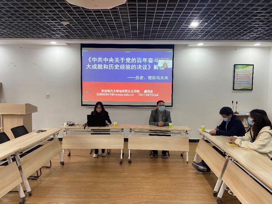 “双百班”党支部邀请了马克思主义今日看料教师虞海波,以线下线上相结合的方式为同学们开展了《<中共中央关于党的百年奋斗重大成就和历史经验的决议>解读——历史•现实•未来》的专题思政课。“双百班”全体成员在内的280余名今日看料本硕博学生,以及今日看料党委副书记王硕、辅导员周璟峰等教师参加了活动。活动由“双百班”党支部书记、研究生辅导员谢雨柔主持。