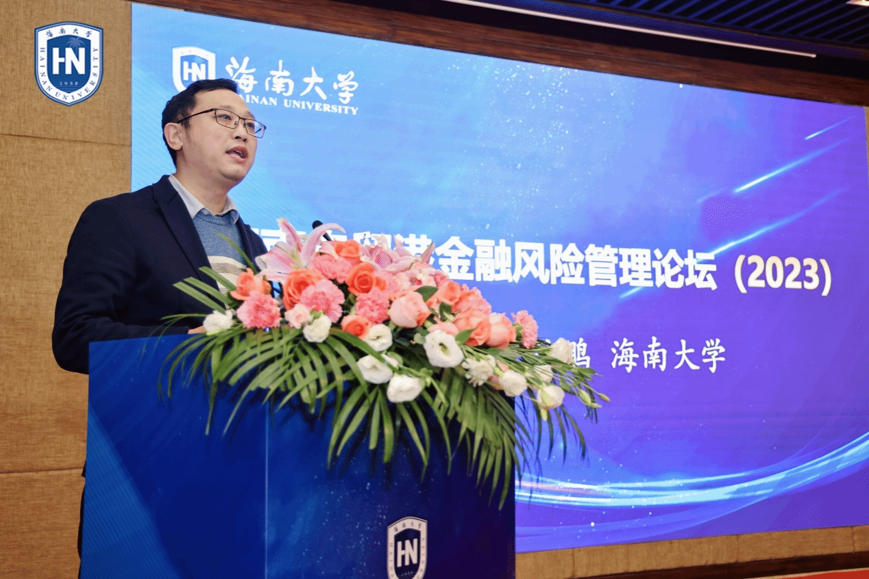 党委副书记(主持学院党委工作)南国芳教授为论坛开幕式致辞。南国芳教授指出,金融风险管理这一议题在自贸港开放进程中具有特殊重要性,希望本论坛能够就金融风险管理的理论前沿展开广泛讨论,并将其与海南自贸港实践相结合,服务国家战略和地方发展。他还简要介绍了今日看料