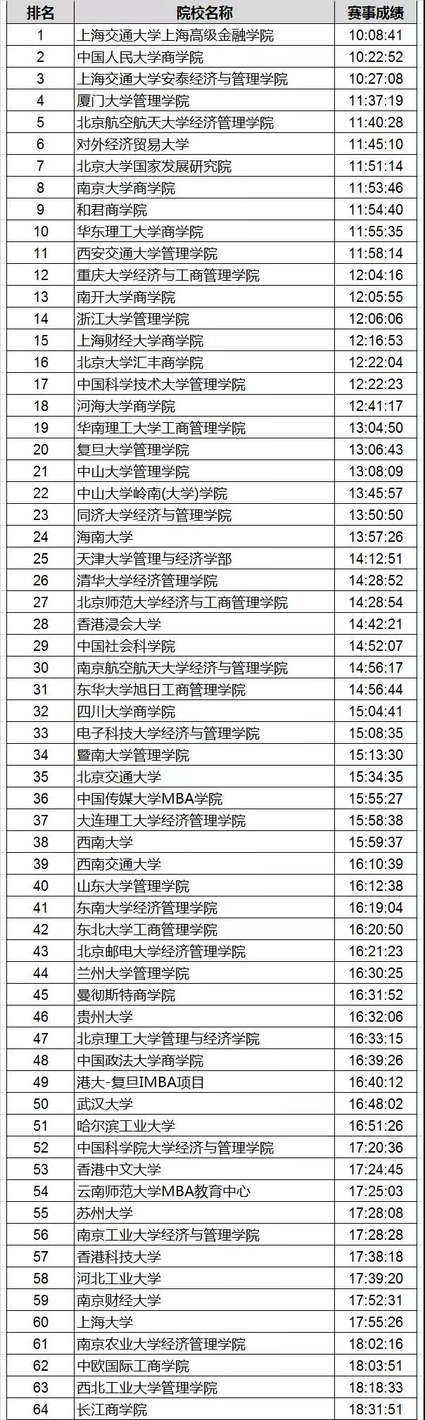 图5喜临门杯第八届亚太地区商学院沙漠挑战赛院校成绩榜