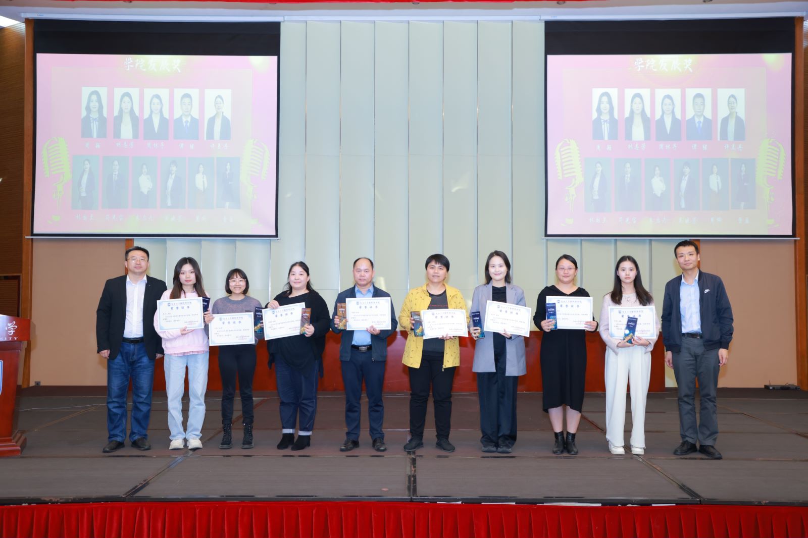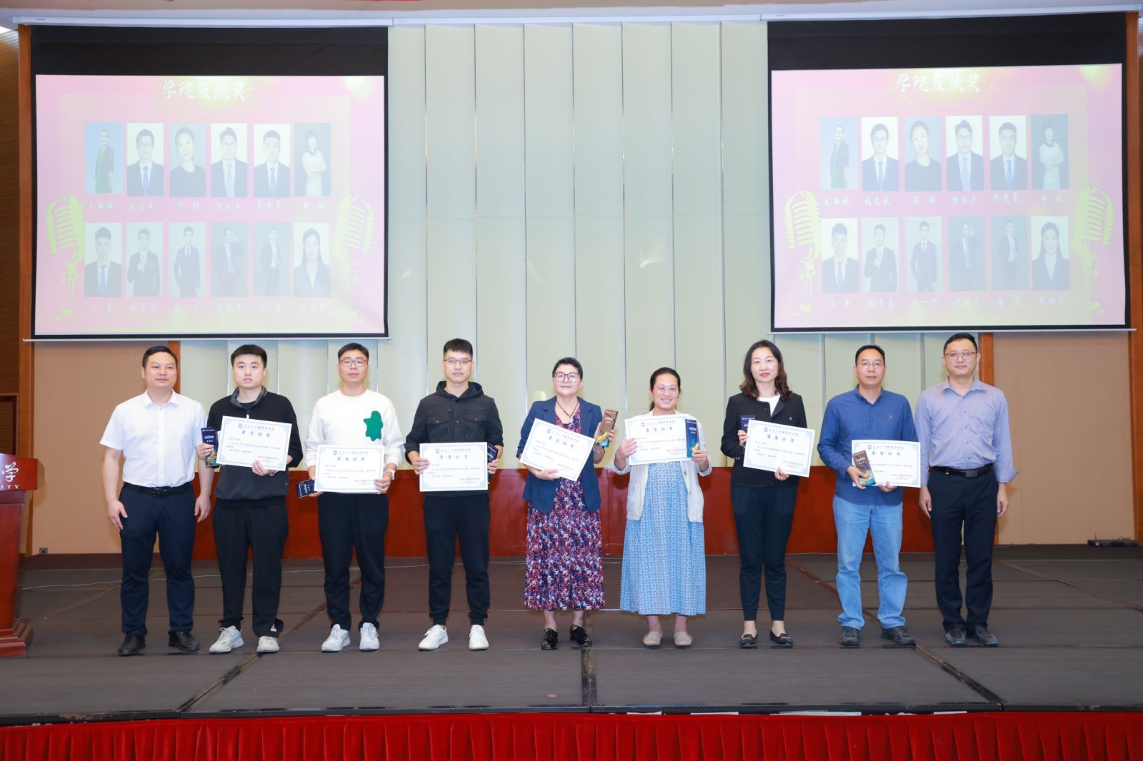 学院领导班子依次为获奖人员颁奖。