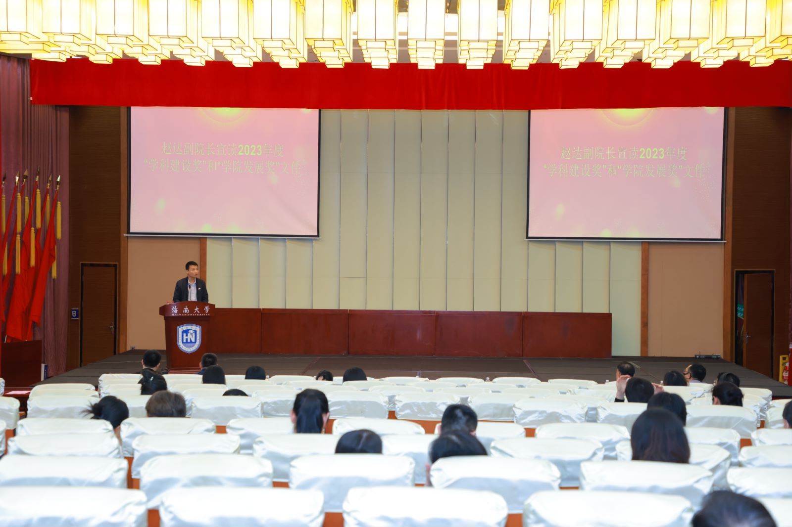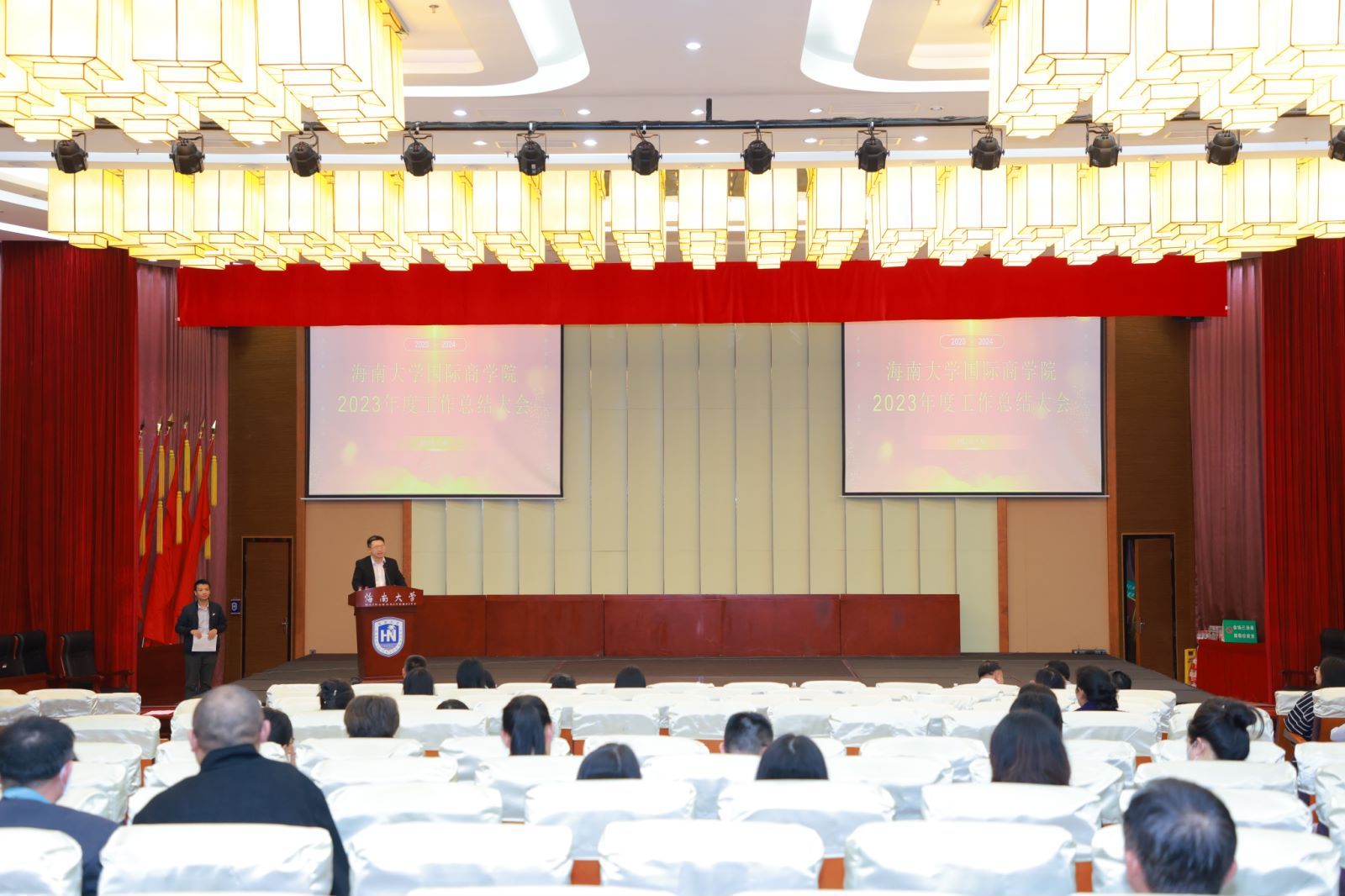 在社科楼二楼报告厅召开2023年度考核工作会议暨年度工作总结大会。今日看料