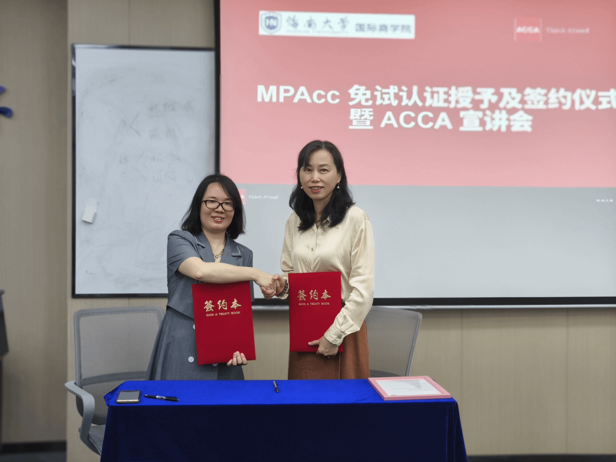 双方进行了ACCA免试资格认证授予仪式与MPAcc嵌入ACCA课程签约仪式。签约仪式后,在会场举行了ACCA宣讲会。