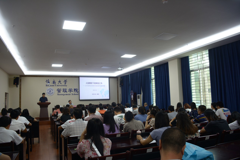 朱克江教授从世界格局及中美形势讲到大国之争的实质,给在座师生展现了国际科技创新的竞争力量及未来发展趋势,并针对技术竞争涉及到的软件开发、互联网控制及全球货币控制等各个方面进行了案例分析。朱教授讲座内容丰富多彩,语言生动幽默,开阔了同学们的学术视野,使大家受益匪浅。