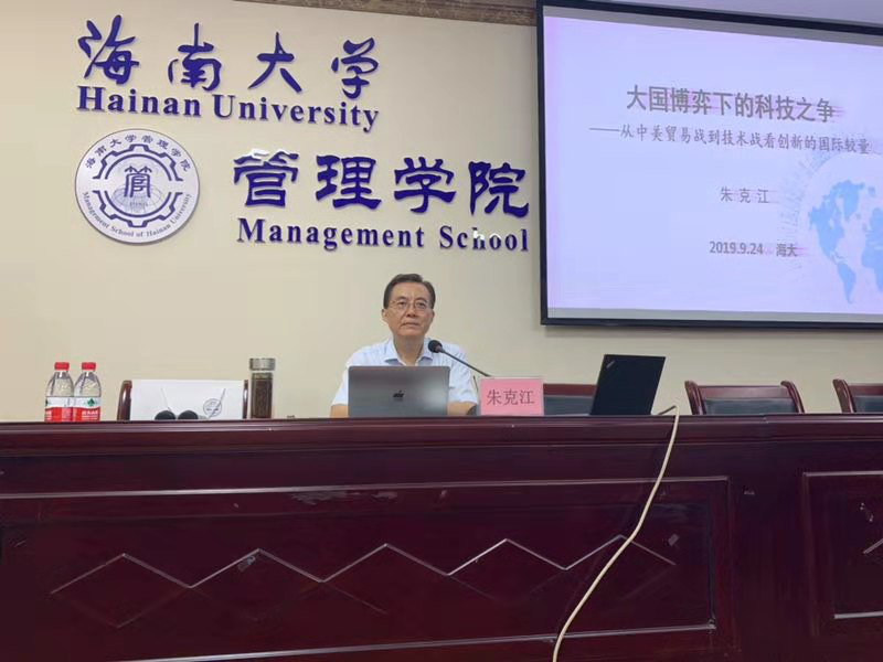 9月24日上午,中国技术创业协会理事长、南京大学朱克江教授来院作学术报告,主题为“大国博弈下的科技之争——从中美贸易战到技术战看创新的国际较量”。此次报告会由学院副院长赵达主持。MBA中心主任童泽林及学院部分博士、硕士研究生参加报告会。