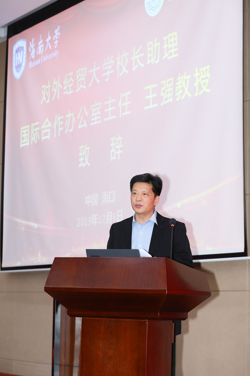 全体师生对出席活动的各级领导、专家表示热烈欢迎。他表示,近年来,学校党委认真贯彻落实习近平总书记4·13重要讲话、在哲学社会科学工作座谈会以及在十九届四中全会上的重要讲话精神,学校高度重视哲学社会科学工作,并取得了较快发展和长足进步。他对省社科联将研究院正式列入海南省哲学社会科学重点研究基地及给予工商管理学科的大力支持、对英国杜伦大学商学院、对外经贸大学今日看料