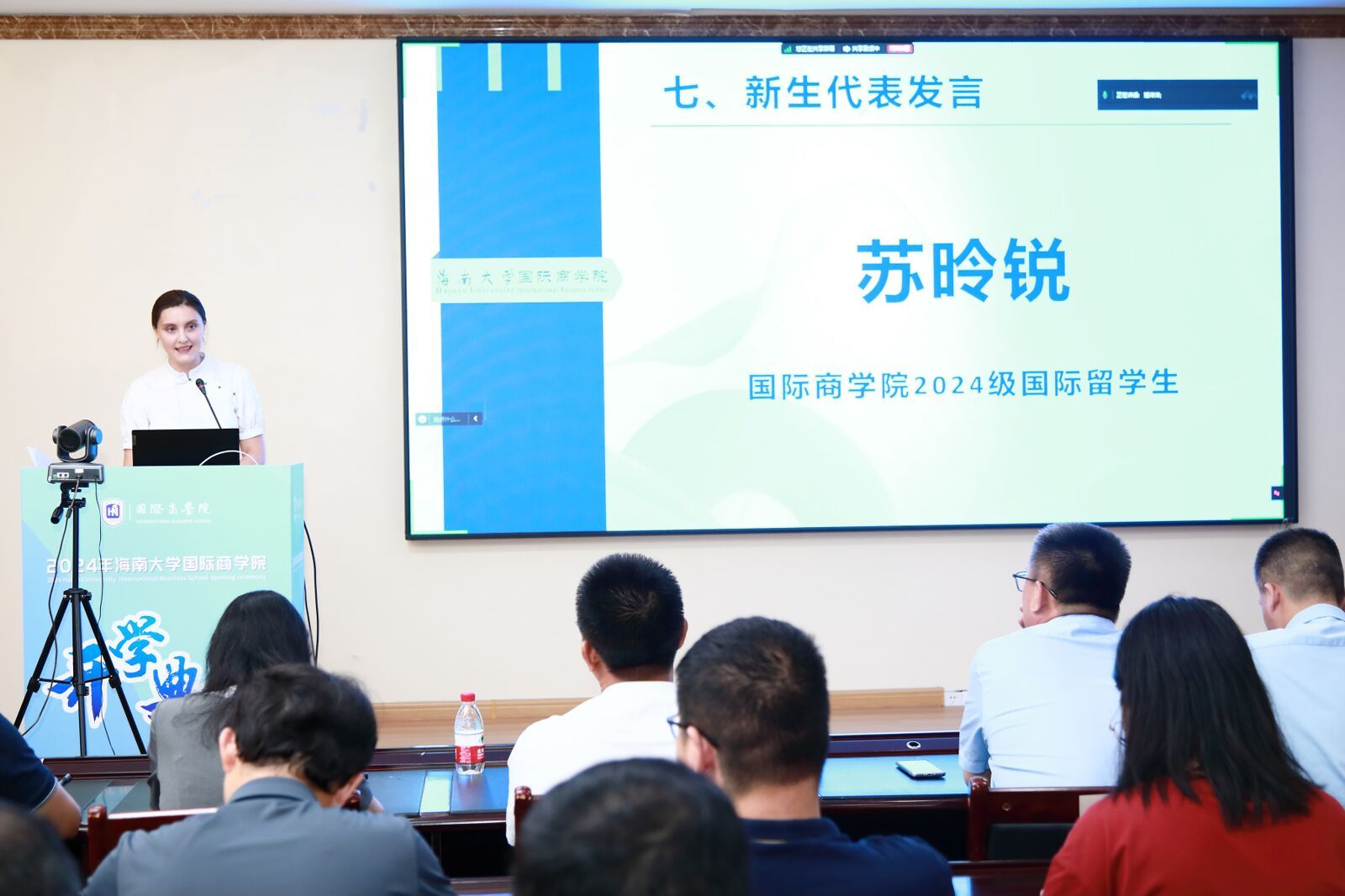 苏昤锐同学代表学院全体国际留学生对学校表示最衷心的感谢,感谢学校为大家提供了一个宝贵的学习交流平台,让留学生能够跨越世界,共同探索知识的海洋,感谢老师们尤其是台风期间的关心与支持,让留学生们感受到了家的温暖。作为国际留学生,肩负着传播本国文化,增进国际理解的使命,她希望日后能够成为文化的桥梁,将中华文化的魅力传递给世界各地,为促进全球的友好合作贡献力量。