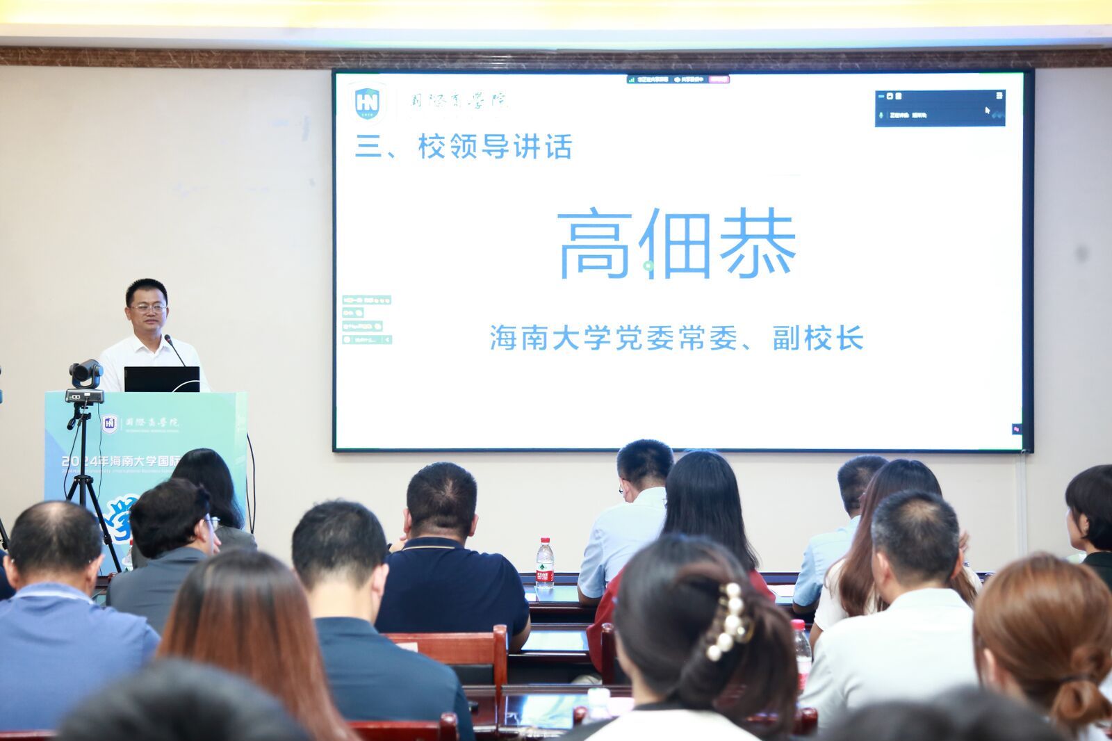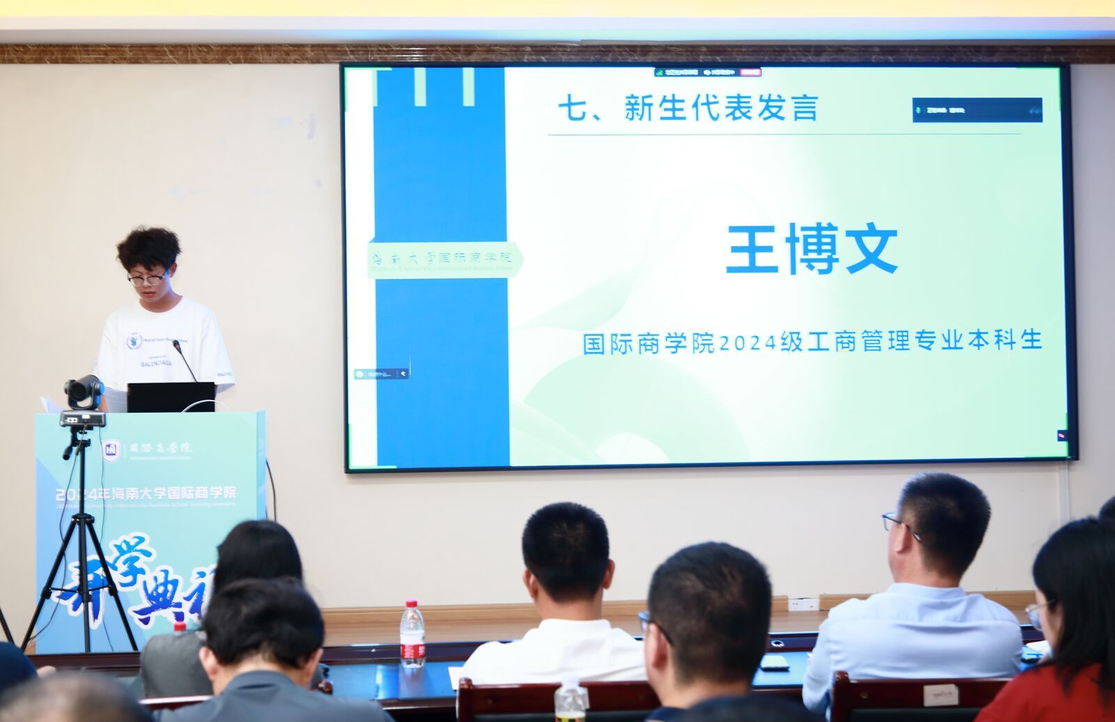 2024级新生们的到来表示热烈的欢迎与衷心的祝贺,介绍了学校发展现状并对学生们提出殷切希望。一是希望同学们珍惜时光,勤奋学习。超强台风“摩羯”给海南造成了重大损失,面对台风“摩羯”带来停水停电等重大挑战,省委省政府优先保障学校恢复供水供电,在具备条件的前提下抓紧复课复学。同学们要珍惜来之不易的学习机会,做到“三不一要”,即在求知求学的道路上奋发图强,不要沉迷于游戏,明确游戏与学习、生活的关系,努力学习专业知识,积极参与各类课外活动,丰富大学生活;遵守课堂纪律,按时上下课,不迟到早退;养成良好的生活习惯,坚持晨读晨练,不睡懒觉;要对得起自己的良知,勤奋学习,自律自强。二是希望今日看料
