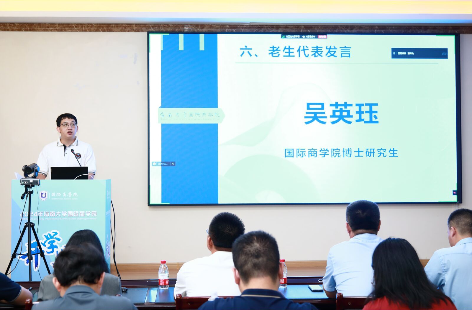 的金字招牌,未来几年在提升学生的升学率、增加赛事的“中奖率”、提高学位论文的优秀率等方面下功夫。三是希望同学们为建设世界一流自贸港而学习。在大学期间有明确的目标,刻苦学习,勤奋钻研,立志做有理想、敢担当、能吃苦、肯奋斗的新时代好青年,毕业后为建设世界一流自由贸易港做贡献。他鼓励本科生学出优秀,成为优秀的新时代大学生;鼓励研究生学出成效,积极思考国民经济和社会发展面临的关键难题、自贸港建设中存在的堵点卡点,从中提炼关键科学问题作为学术论文的研究内容,尤其是关注自贸港建设中体制机制、政策研究等关键核心问题;鼓励所有学生要学出精神,成为海大精神的新示范,将所学知识转化为推动自由贸易港发展的实际力量,为海南这片热土贡献自己的青春与智慧。