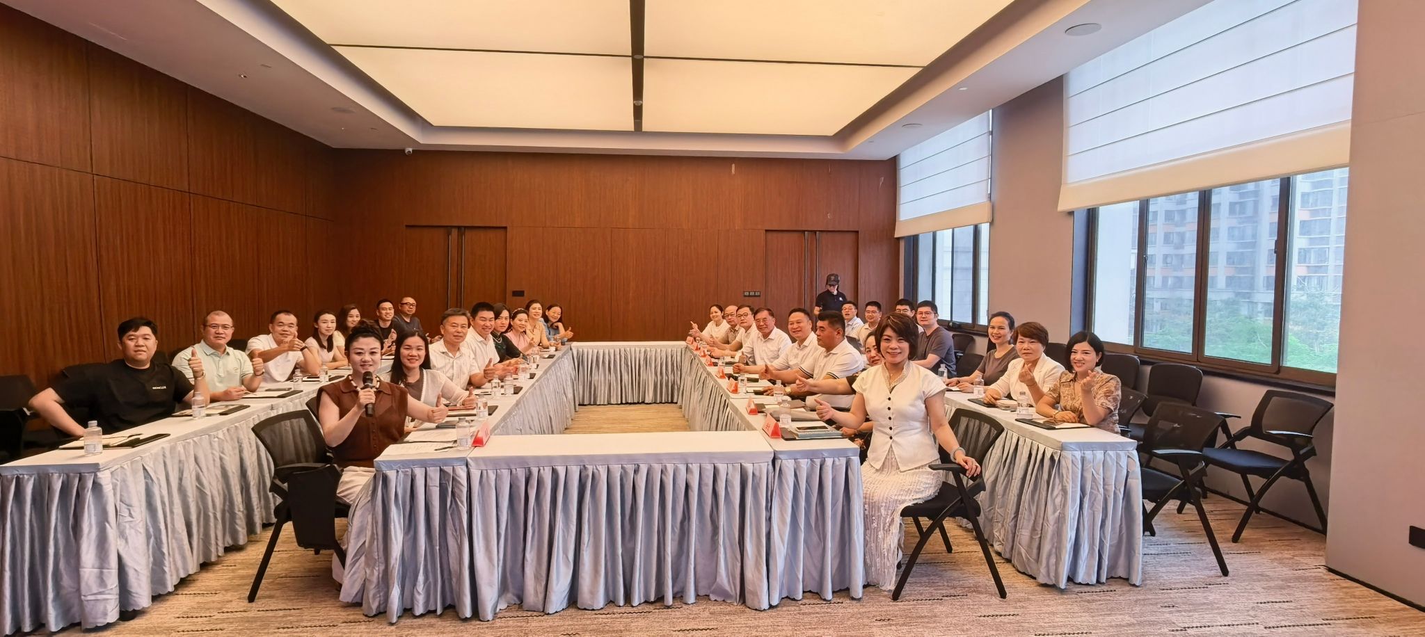 工商管理学科责任教授刘启华结合自身研究动态与海南自贸港封关运作的最新情况,声情并茂地描绘了海南发展现状,为校友们勾勒出机遇蓝图,并呼吁大家携手实现“校友反哺、学院赋能”的共赢发展。全球AI电子联盟名誉主席、中创实业集团总裁赖文鑫首先对受邀参加本次揭牌仪式表示感谢,随后深情讲述了自己的创业史与发家史,并总结了其中的经验教训与奋斗精神。海南正泰电气成套设备有限公司副总叶呈东点明方向选择的重要性,同时指出要学会“营销自己”,并分享了自己未来的研究领域,期待与校友们开展合作。华忆科技有限公司执行董事米满叶分享自身的工作心得,并表示期待未来与校友加强交流,探索合作的可能。