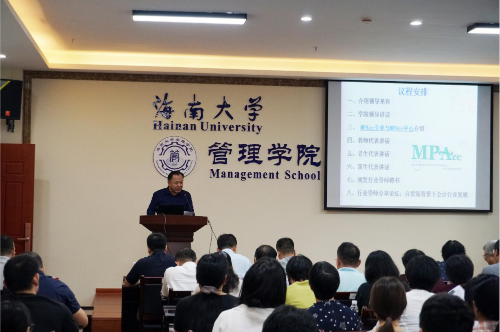 会上,邢谷川书记为导师和同学介绍了管理学院的具体情况和发展前景,并对新同学的学习生活提出了要求与希望。郭慧芳老师介绍了MPAcc的研究方向、师资力量、实习优势。周昀飞,周文芳分别代表老生和新生讲话,表示会严格要求自己,努力学习。会上院领导为行业导师颁发聘书,行业导师针对自贸港背景下会计行业发展这一主题进行了论坛分享。
