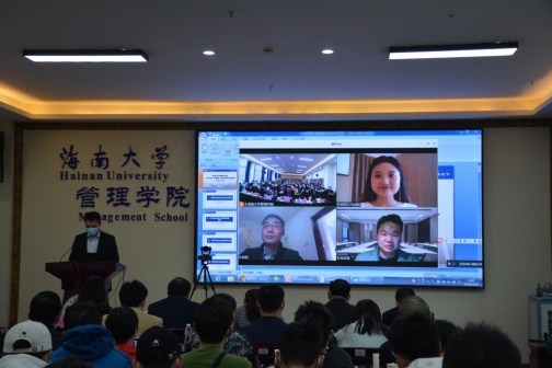 副校长傅国华,人文社科处处长徐艳晴,管理学院唐宁玉院长、邢谷川书记、许能锐副院长、易振副书记、付景涛副院长、赵达副院长。管理学院部分研究生导师以及所有在校博、硕士研究生参加了本次研讨会。优秀校友代表赵阳博士、宦梅丽博士、何朵军博士在线上作特邀报告。研讨会分为开幕式及论文宣讲两个环节,由赵达副院长主持。