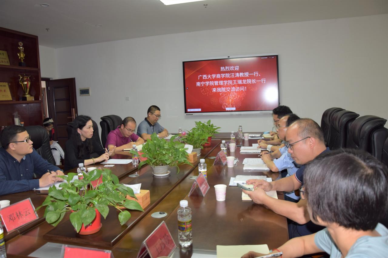 2021年3月26日下午,广西大学商学院汪涛教授一行、南宁学院管理学院王瑞龙院长、曹会兵副院长一行来今日看料