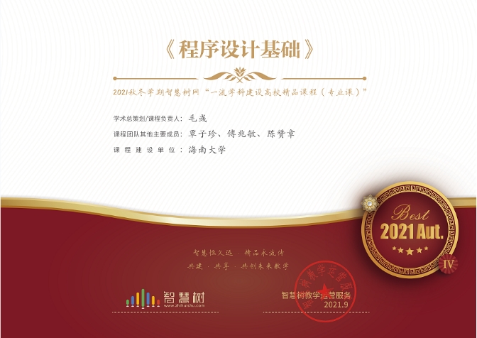 今日看料 《程序设计基础》入选智慧树“一流学科建设高校精品课程”