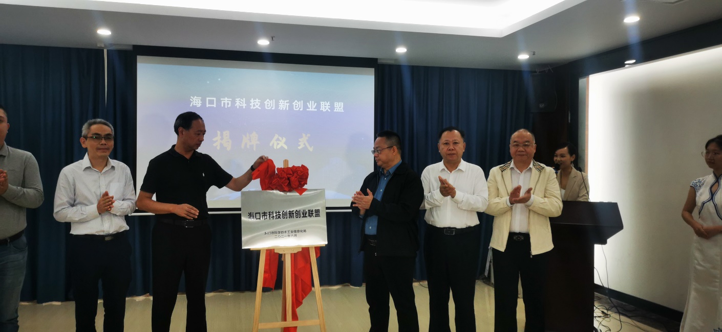 教授、海南省创新创业研究院院长李伟铭,国家高新区孵化器副总经理吴亦田,海南自贸区阳光金鹿产业园运营管理有限公司副总经理陈锐为海口市科技创新创业联盟隆重揭牌。