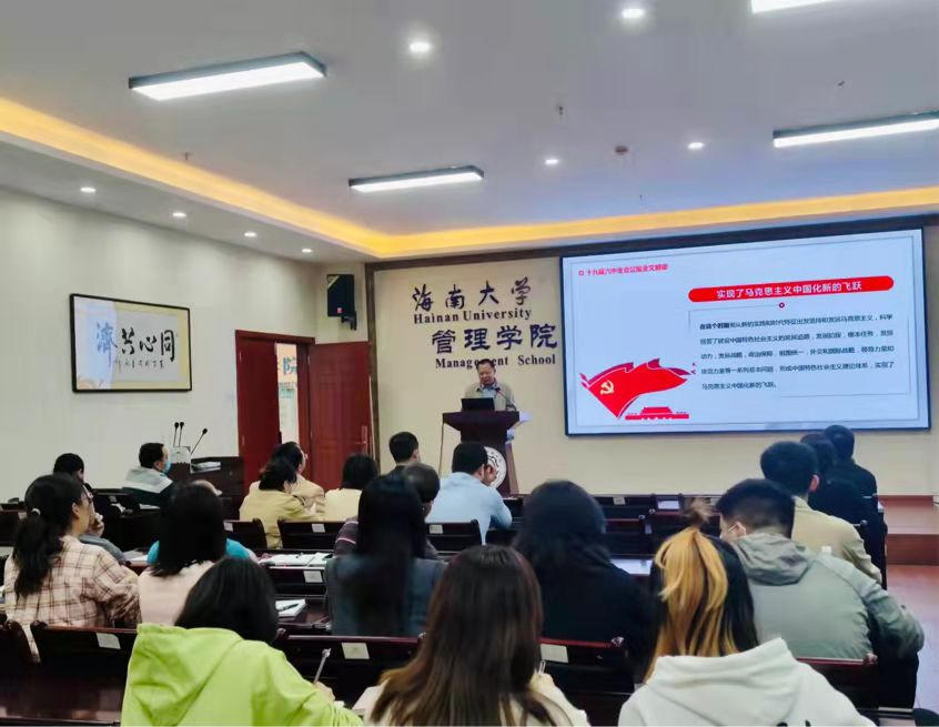 2021年11月24日下午,管理学院党委书记邢谷川于社科楼B112主持召开专题学习会议,集中学习《党的十九届六中全会精神》。学院领导班子成员,各党支部书记、支部委员,各系、各办(中心)主任参加。