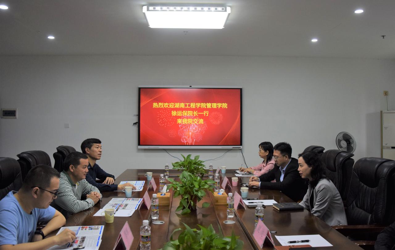 2021年12月17日上午,湖南工程学院管理学院徐运保院长、文龙光教授及黎博副教授来今日看料 交流。今日看料 管理学院唐宁玉院长、付景涛副院长、赵达副院长出席座谈会,教务办公室郑素珍主任、实验室原晓燕主任参加会议。