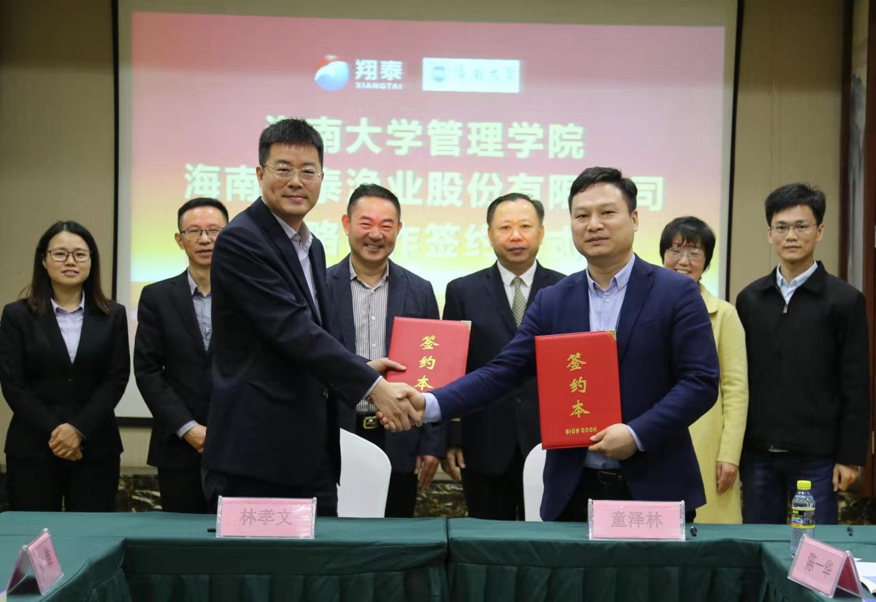 管理学院与海南翔泰渔业股份有限公司签订了教学实践基地建设战略合作协议,双方在人才培养、企业管理培训与项目合作等方面达成了意向。