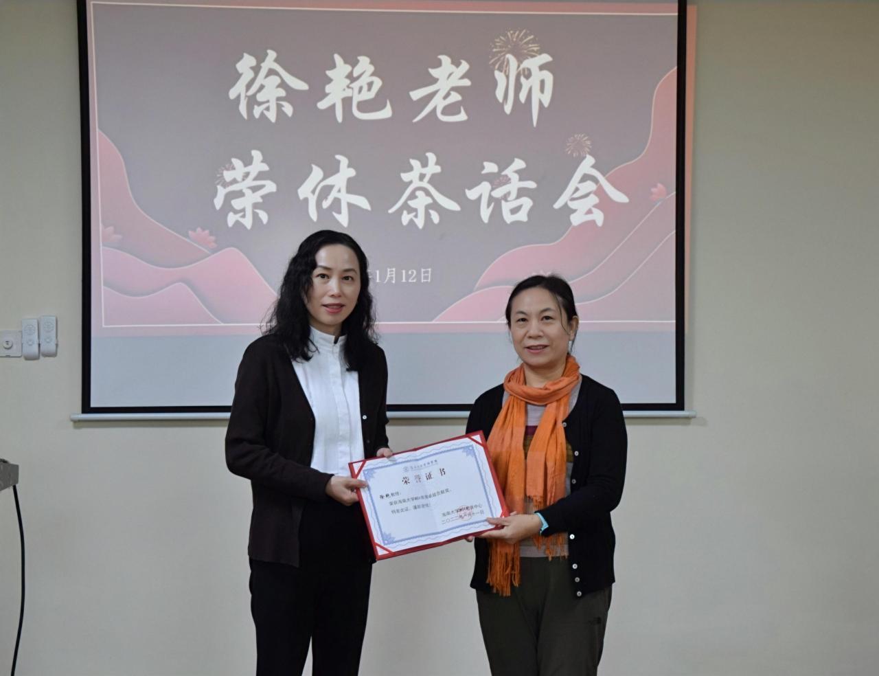唐宁玉院长为徐艳老师颁发荣誉证书并送上自己的祝福,希望徐老师下半场的赛道更加精彩。