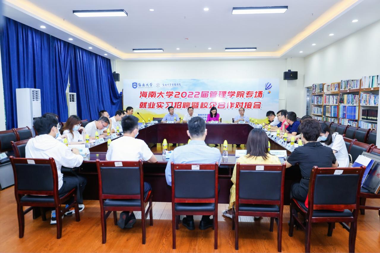 副校长傅国华、招生就业处副处长张婷,管理学院院长唐宁玉、党委书记邢谷川、副院长张德生,天工书院党委副书记(主持工作)易振,管理学院副院长童泽林等出席会议。57家企事业单位代表参加会议,海南电视台、中新网等媒体现场报道。会议由张德生主持。