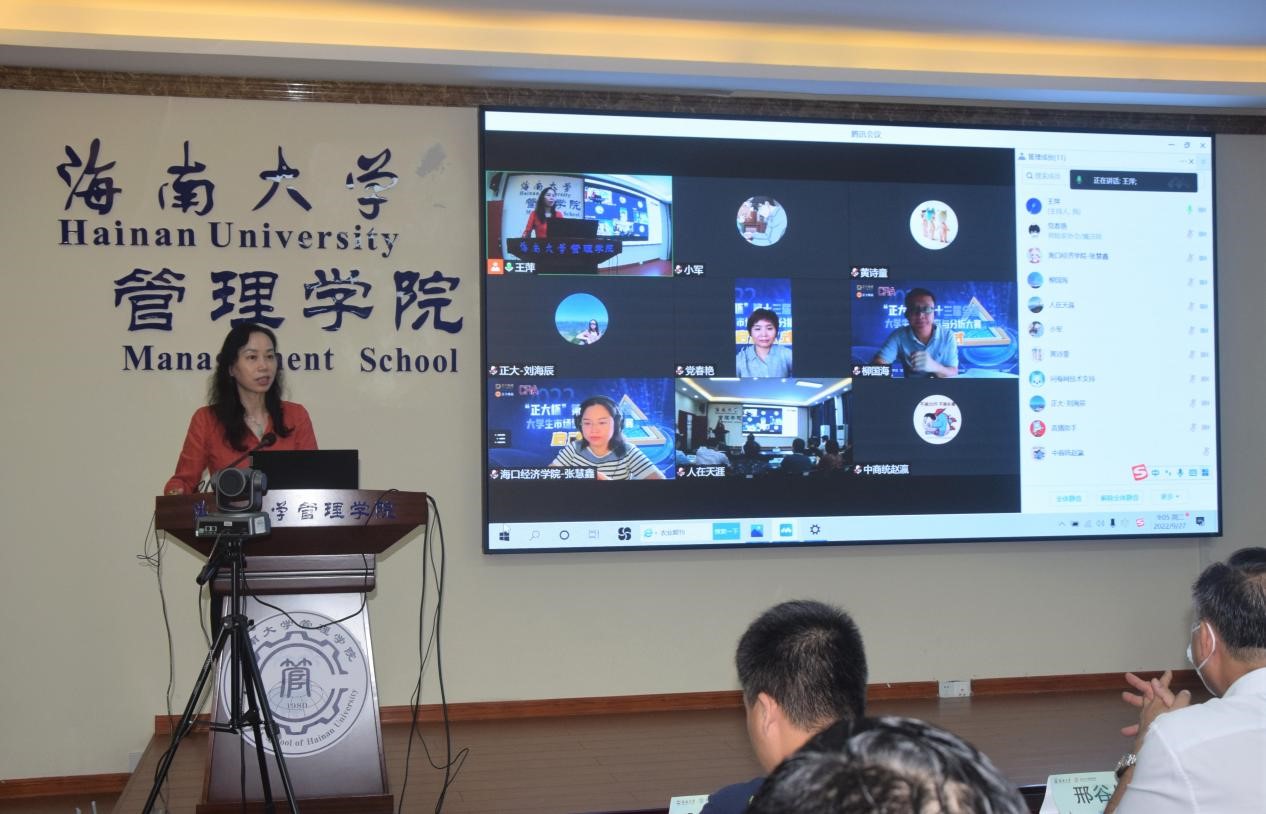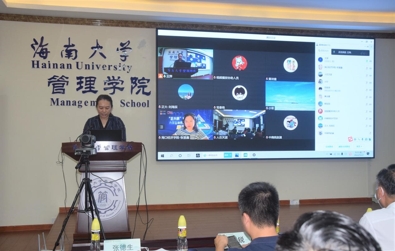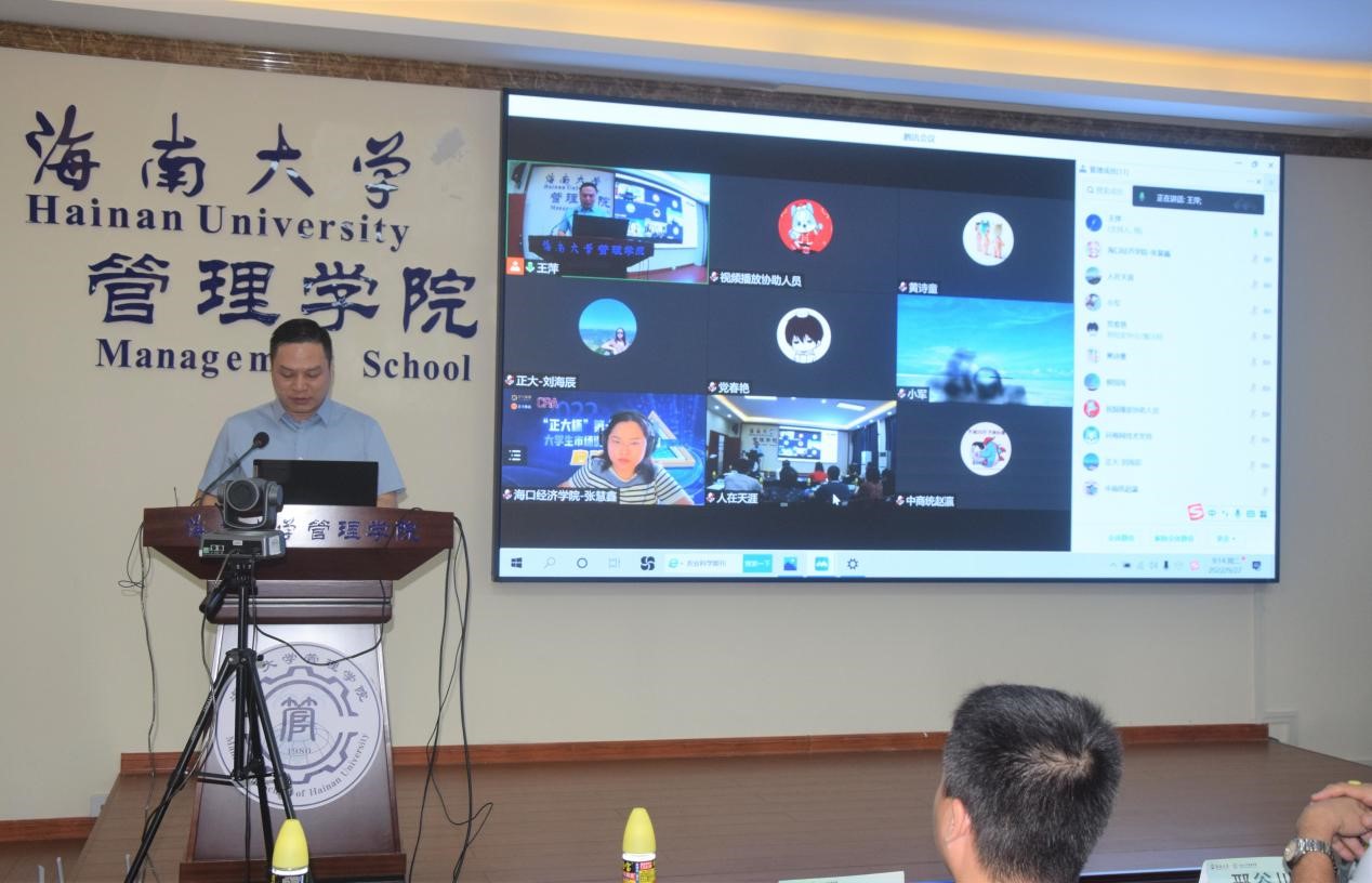海南师范大学经济与管理学院副院长甘小军,琼台师范学院管理学院副院长党春艳,海南热带海洋学院商学院市场营销教研室主任柳国海,海口经济学院南海艺术与科技学院副院长张慧鑫,正大食品企业(上海)有限公司海南分公司刘海辰总裁在线上参与了会议。张德生副院长主持会议。