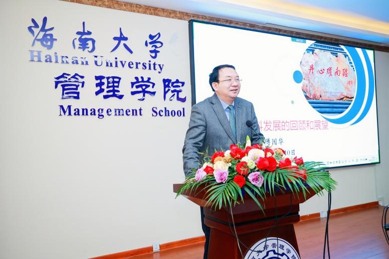 在座谈环节,副校长傅国华教授作了题为“热带农经学科的回顾和展望”主旨演讲,讲述了农经系40年的发展历程、主要成效与贡献以及发展展望。他结合发展的重要节点,从1959年设农业经济组,1980年开始办培训班,1982年设农业经济系等等,深情的回顾了发展过程中的人和事,并对建系教职工、农经系历届校友,学校领导、上级主管部门、海南广东云南三大农垦以及中国热带农业科学院、华南农业大学等单位表达了诚挚谢意。并重点从认清人类发展趋势研究农业,善于理论总结、追求原创,注重特色、创造优势,将论文写在大地上,做优做亮社会服务,用心用爱培养高端人才等方面提出了建议。随后,参会校友围绕“百年变局下海大农经专业发展”这一主题进行自由发言。