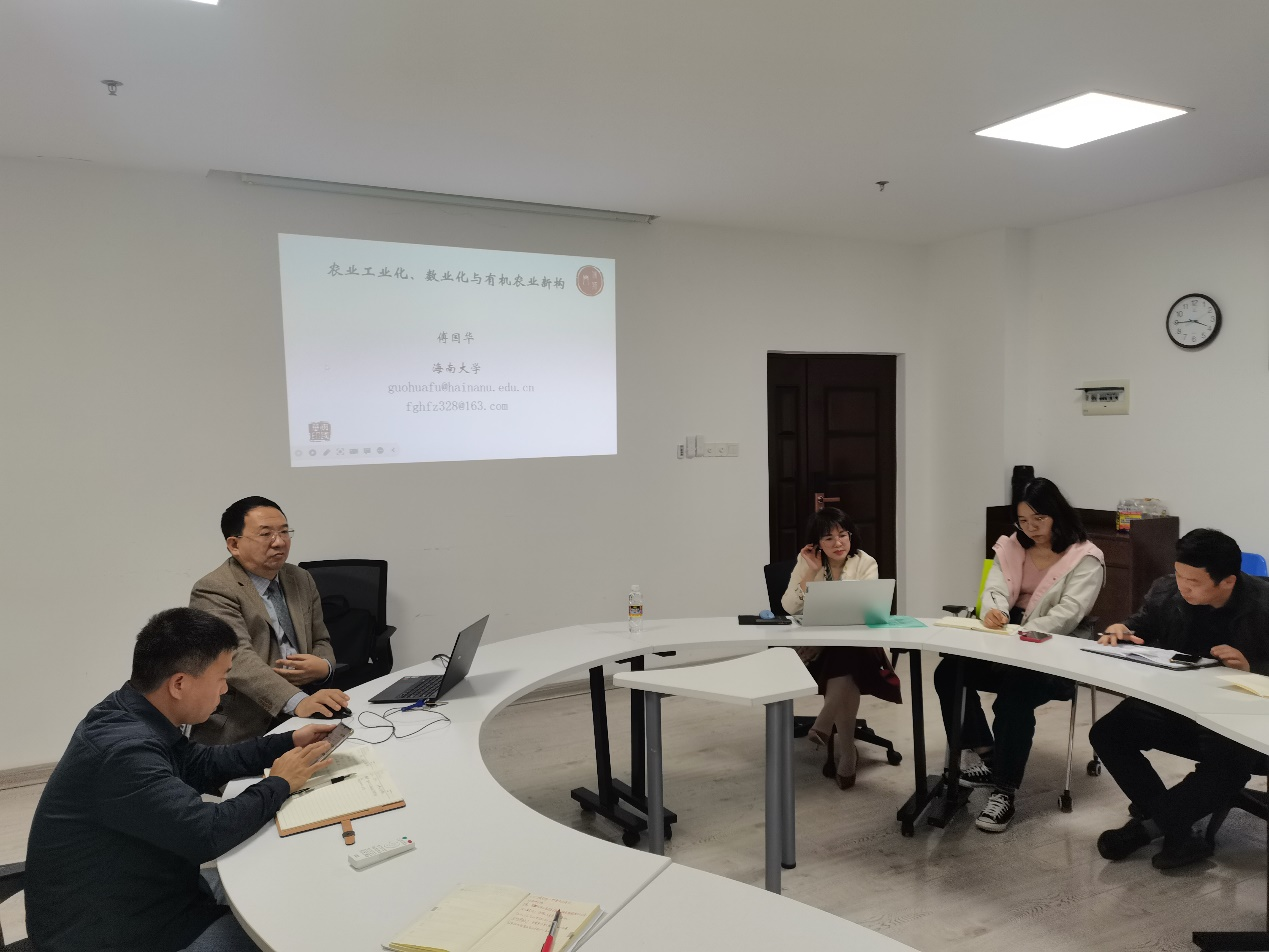 2023年2月21日下午,尖峰热带农经驿站第3期邀请到管理学院傅国华教授作主题为《农业工业化、数业化与有机农业新构》的报告。报告会由许能锐副院长主持。