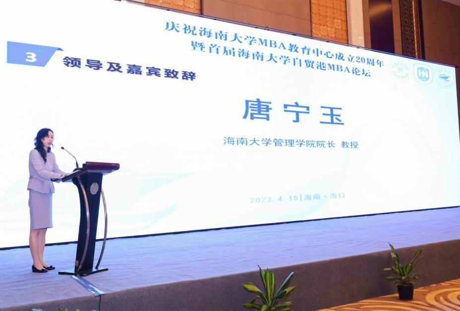 管理学院院长唐宁玉向参会的各位领导及嘉宾表示热烈欢迎,她重点围绕“自贸港”和“MBA”两个关键词强调了MBA是自贸港建设的主力军,期望MBA论坛在自贸港建设中发挥集聚人才、贡献力量和引领创新的作用,为自贸港建设添砖加瓦。