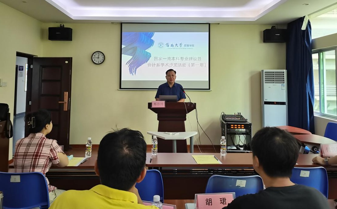 学院深入开展学习贯彻习近平新时代中国特色社会主义思想主题教育,按照“学思想、强党性、重实践、建新功”的总要求,对于如何高质量建设国家级一流本科专业的课题,学院开展一系列调查研究工作。为落实课题建设,学院于2023年5月26日在社科楼B308举办国家级一流本科专业建设暨会计系学术沙龙活动。暨南大学会计系副主任窦欢教授担任主讲人。院党委书记邢谷川,副院长付景涛、赵达、童泽林,会计系负责人及学院部分师生参加本次学术沙龙,学院副院长许能锐主持活动。