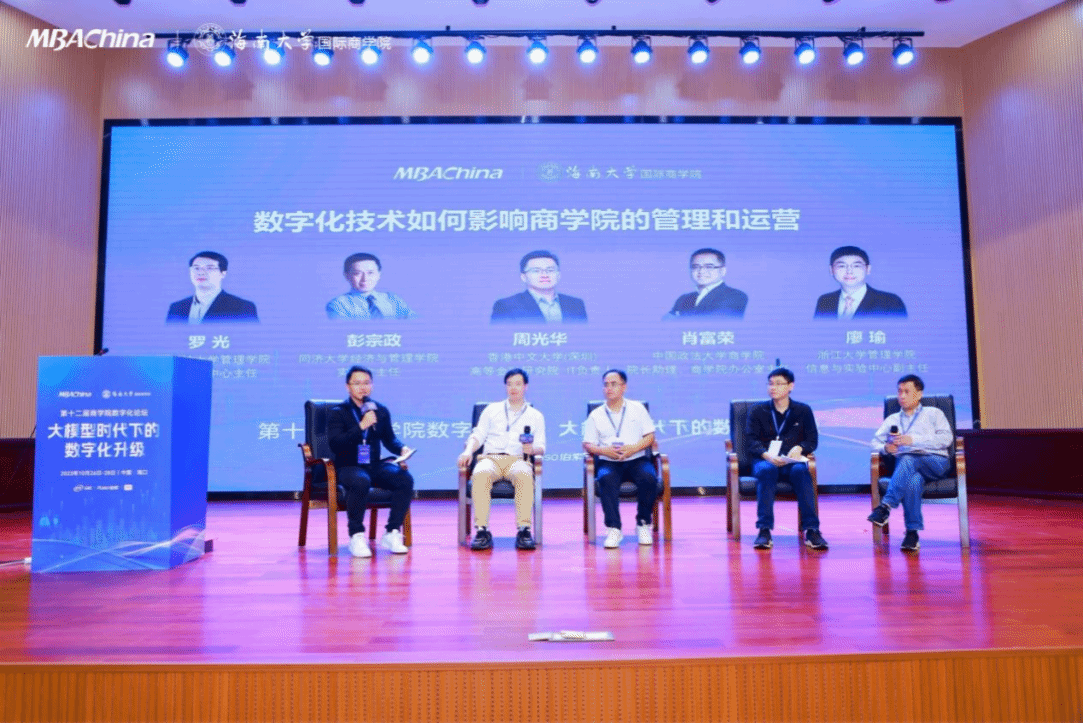 长江商学院信息中心主任王铁军以“大模型时代下CXO能力发展思考及数字化转型实践”为主题作分享发言。他认为,企业数字化转型的核心是“业务在线、高效协同、数据智能”,而人工智能可以在这三方面提供赋能。清华大学经济管理学院信息中心主任李远以“新一代商学院数智化转型建设模式的思考与探索”为题,上海交通大学安泰经济与管理学院信息中心主任吴琼雷以“商学院在智能化之道与思考”为题,MBA China副总裁张磊以“全场景申请系统解决方案”为题,ETS中国区GRE高等教育副主任骆宁以“信息化技术在教育测评场景中的领先应用”为题,电子科技大学MBA教育中心主任陈德富以“‘三化融合’数智时代电子科技大学MBA发展之路”为题,南京伯索网络科技有限公司创始人兼CEO陈志飞以“基于数字空间的商学院教学创新探索”为题,分别进行了分享与讲解。