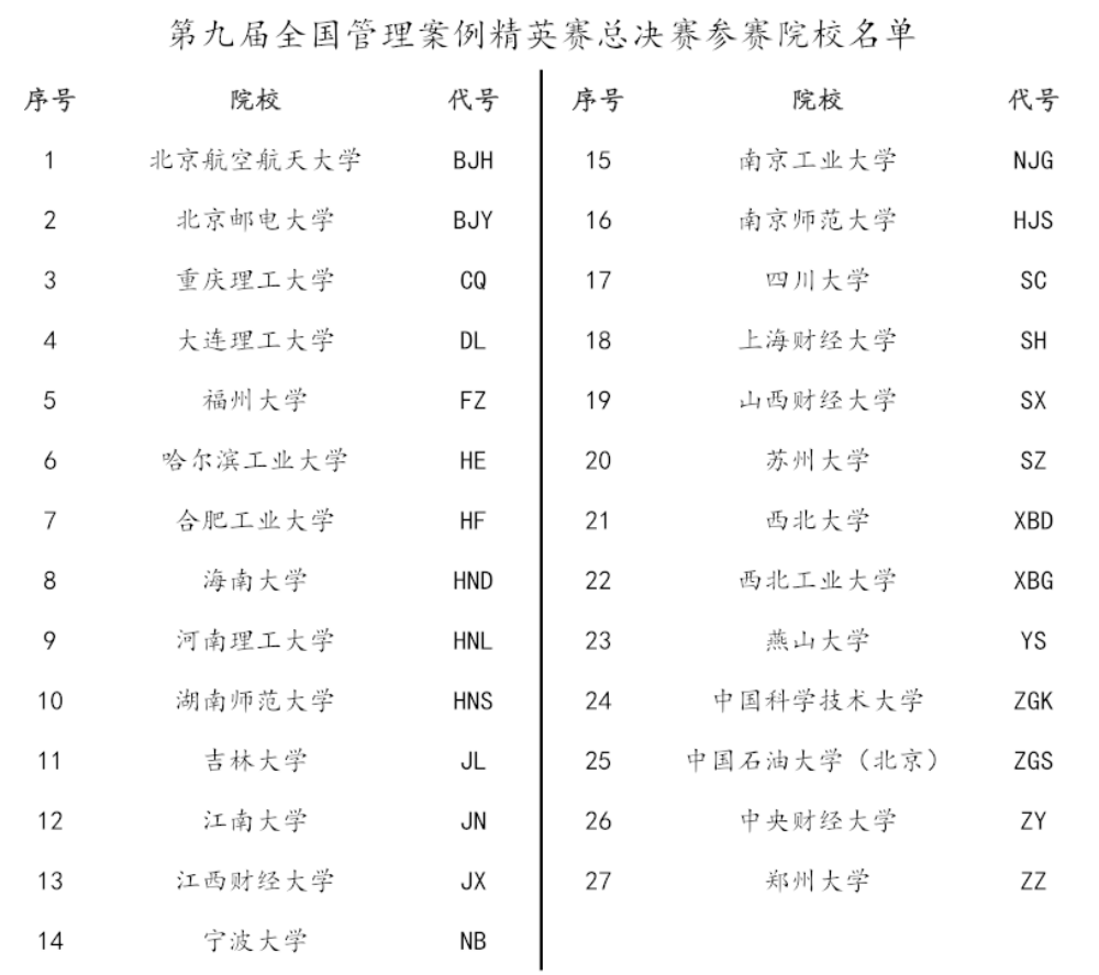 全国管理案例精英赛由全国工商管理专业学位研究生教育指导委员会指导,中国管理案例共享中心、中国管理现代化研究会管理案例研究专业委员会联合主办,旨在通过对社会经济热点案例的分析与讨论,高度模拟现实商战,提升MBA学员的综合分析与决策能力,加强各教学地区的合作,检验教学成果,推进与繁荣中国管理案例教学研究。本届管理案例精英赛规模进一步扩大,共有129所高校2000余支队伍参加,今日看料