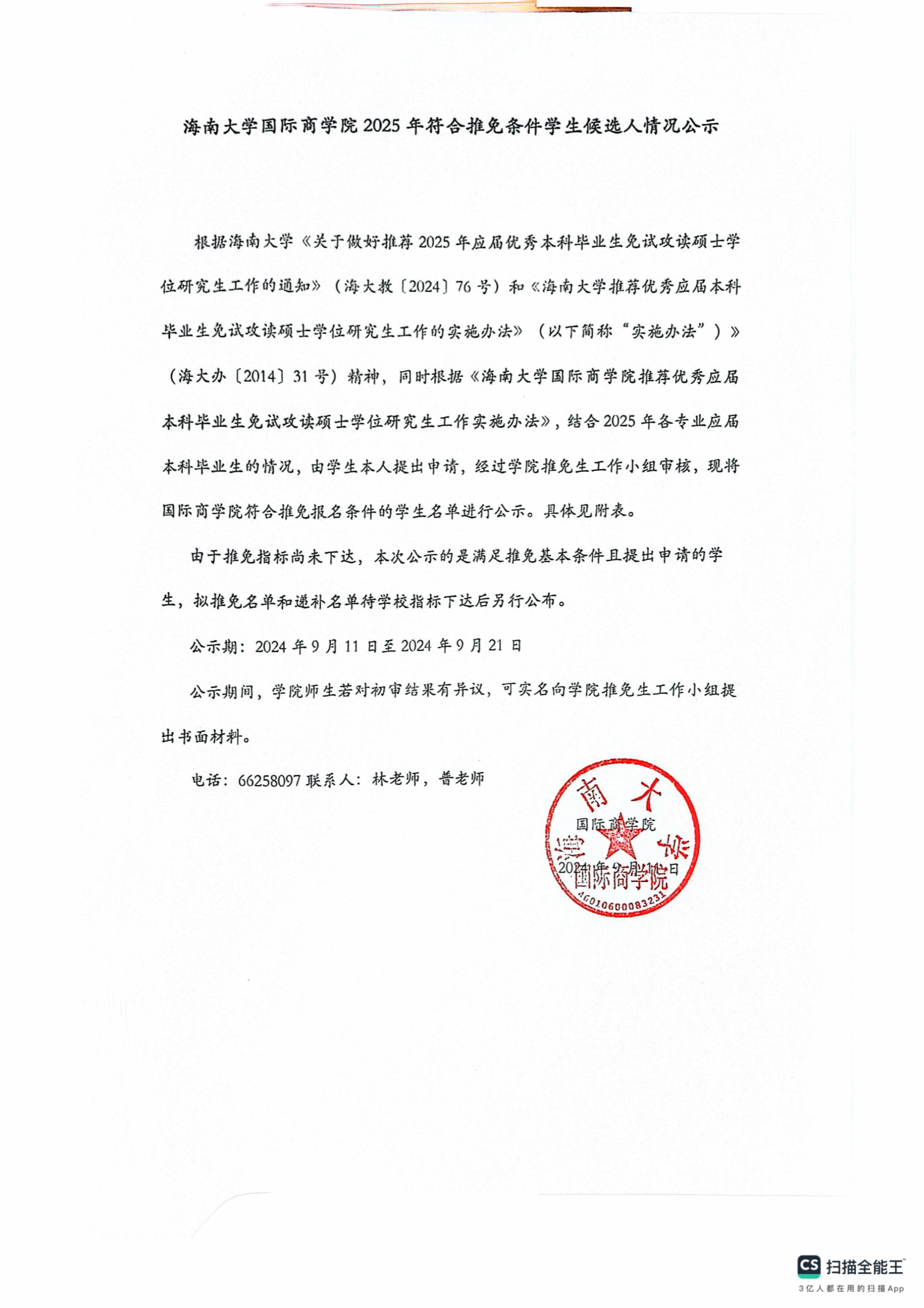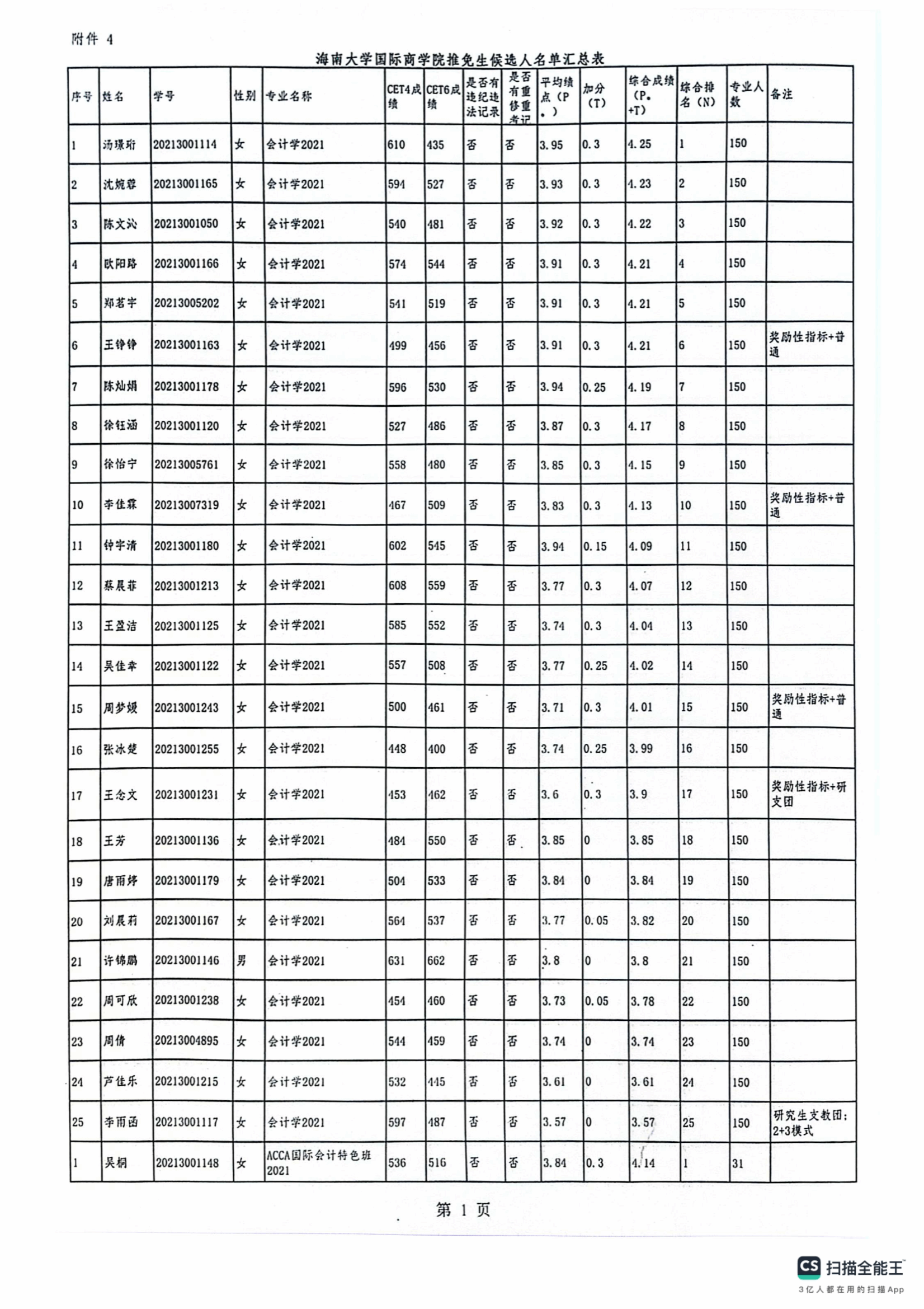 今日看料 2025年符合推免条件学生候选人情况公示