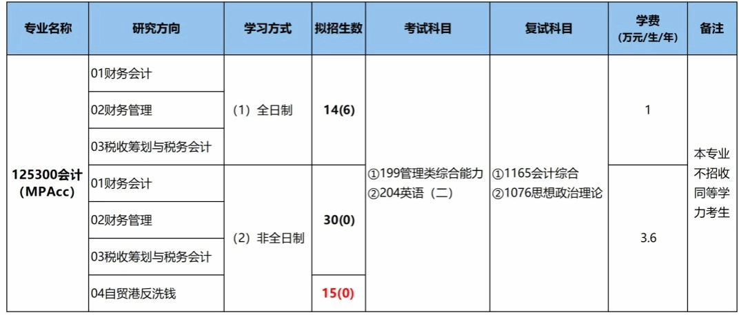 注:我校硕士研究生基本学制为3年,非全日制MPAcc的全程学费为10.8万元/生。