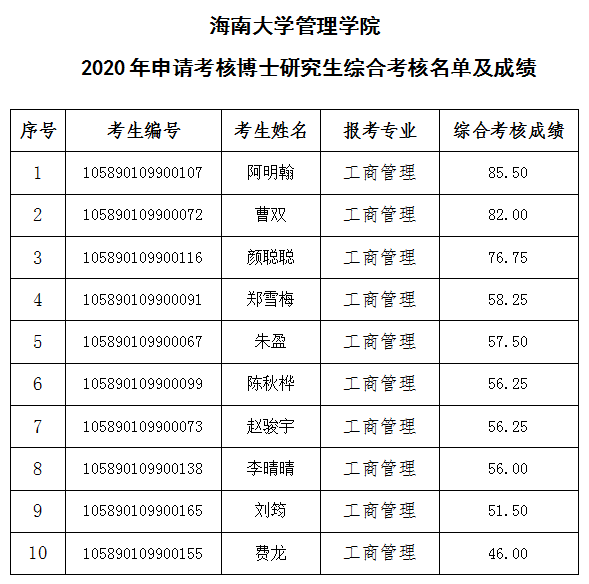 今日看料 管理学院2020年申请考核博士研究生综合考核名单及成绩