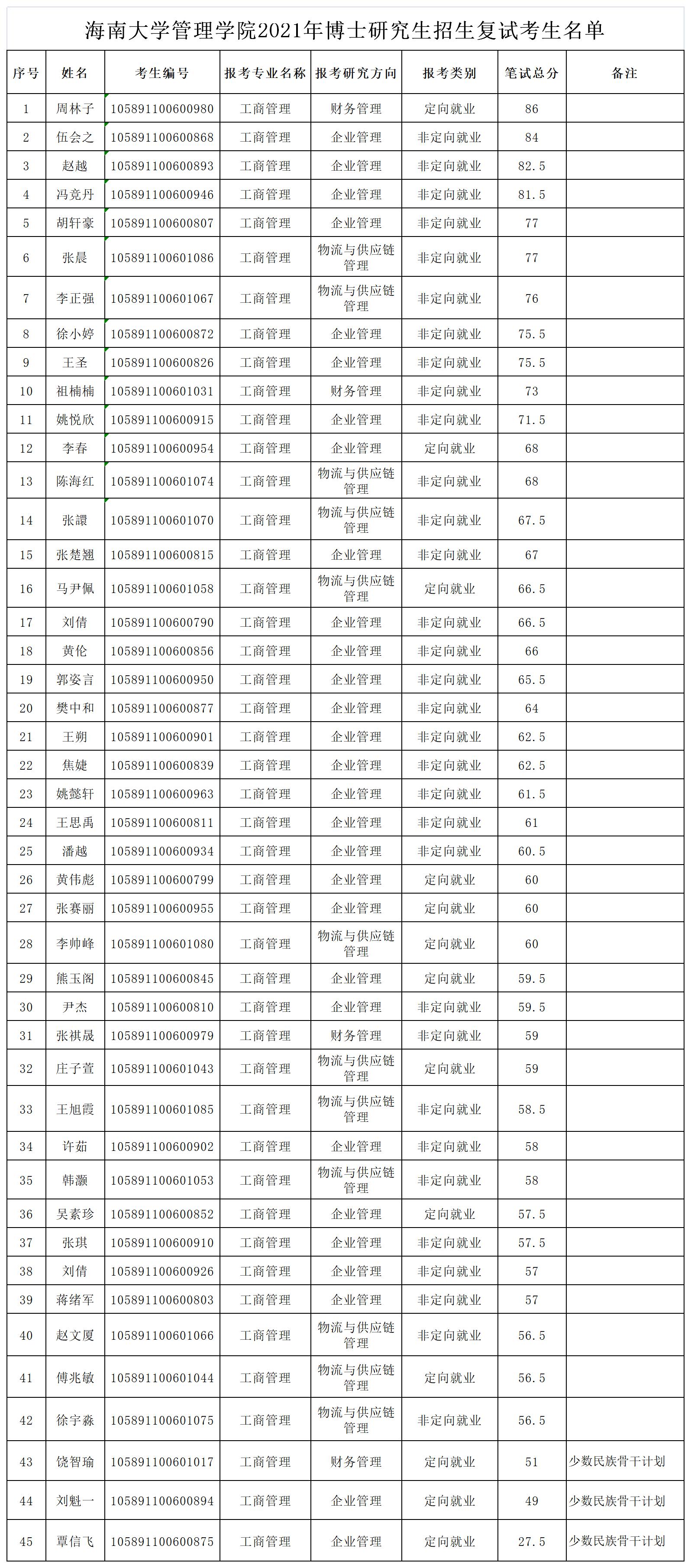今日看料 管理学院2021年博士研究生招生复试考生名单