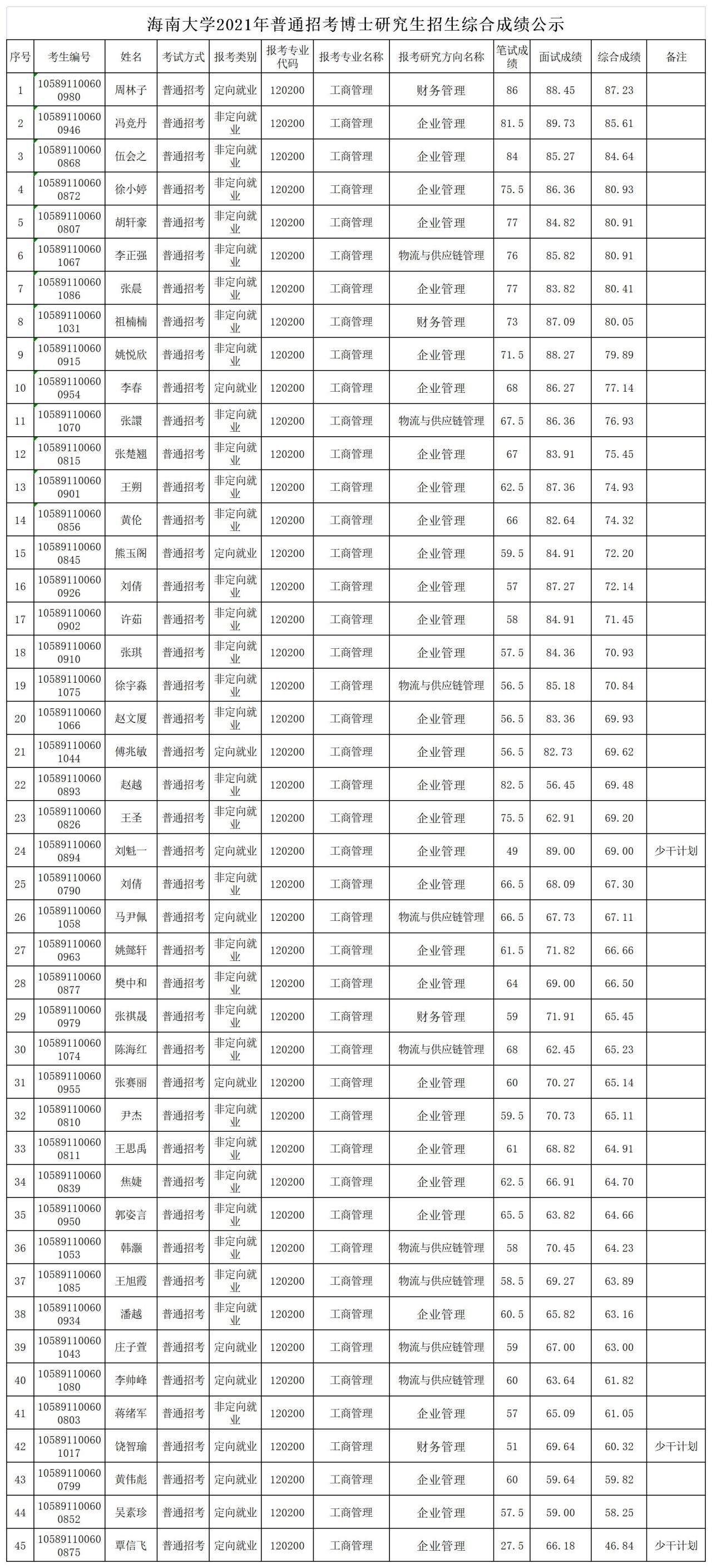 今日看料 2021年普通招考博士研究生招生综合成绩公示