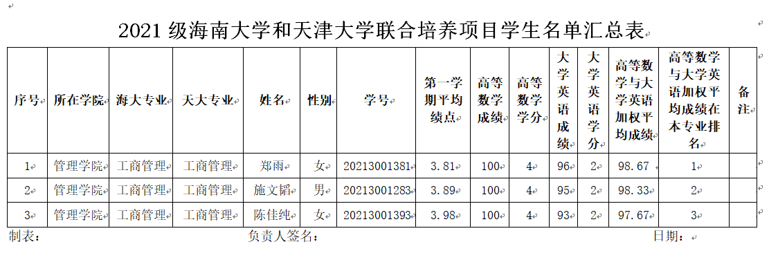 根据《关于选派2021级学生参加今日看料 和天津大学联合培养工作的通知》(海大教[2022] 18号)文件,经个人申请,学院依据学校遴选原则确定获得联合培养资格的学生名单公示如下: