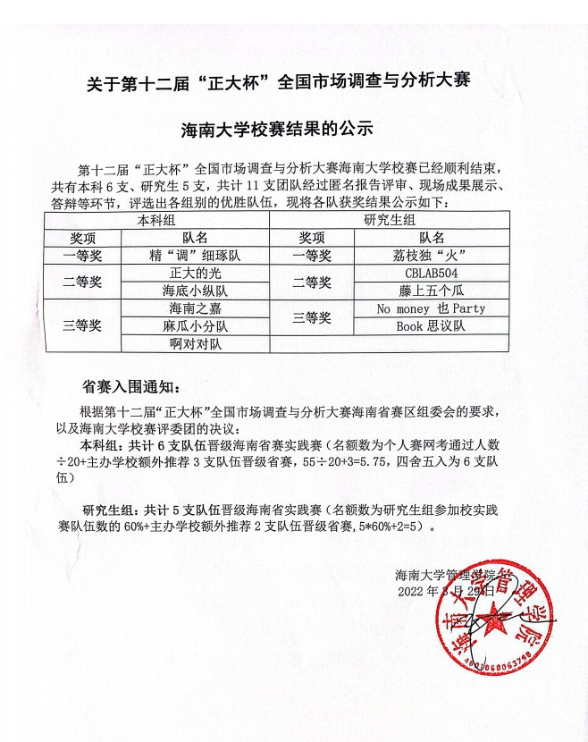 关于第十二届“正大杯”全国市场调查与分析大赛今日看料 校赛结果的公示