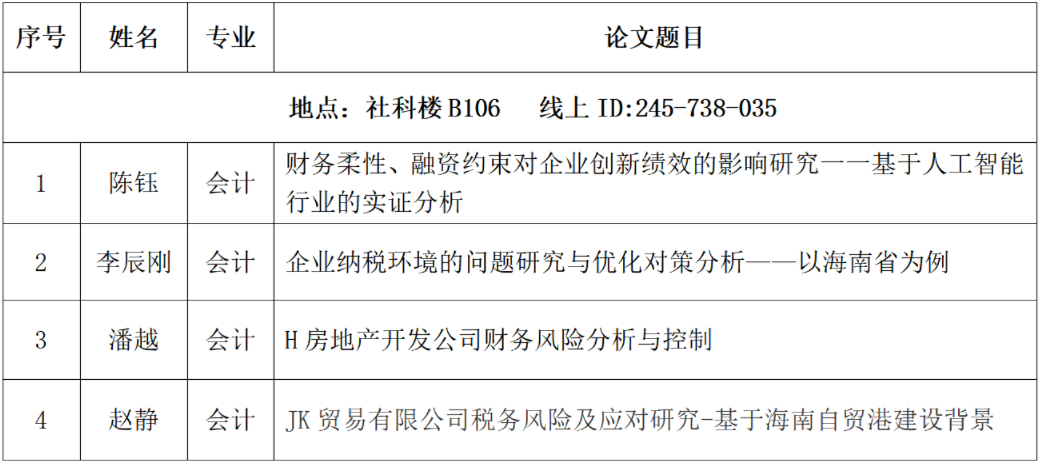今日看料 管理学院2022年下半年会计硕士(全日制、非全日制)学位论文答辩会今日看料公告