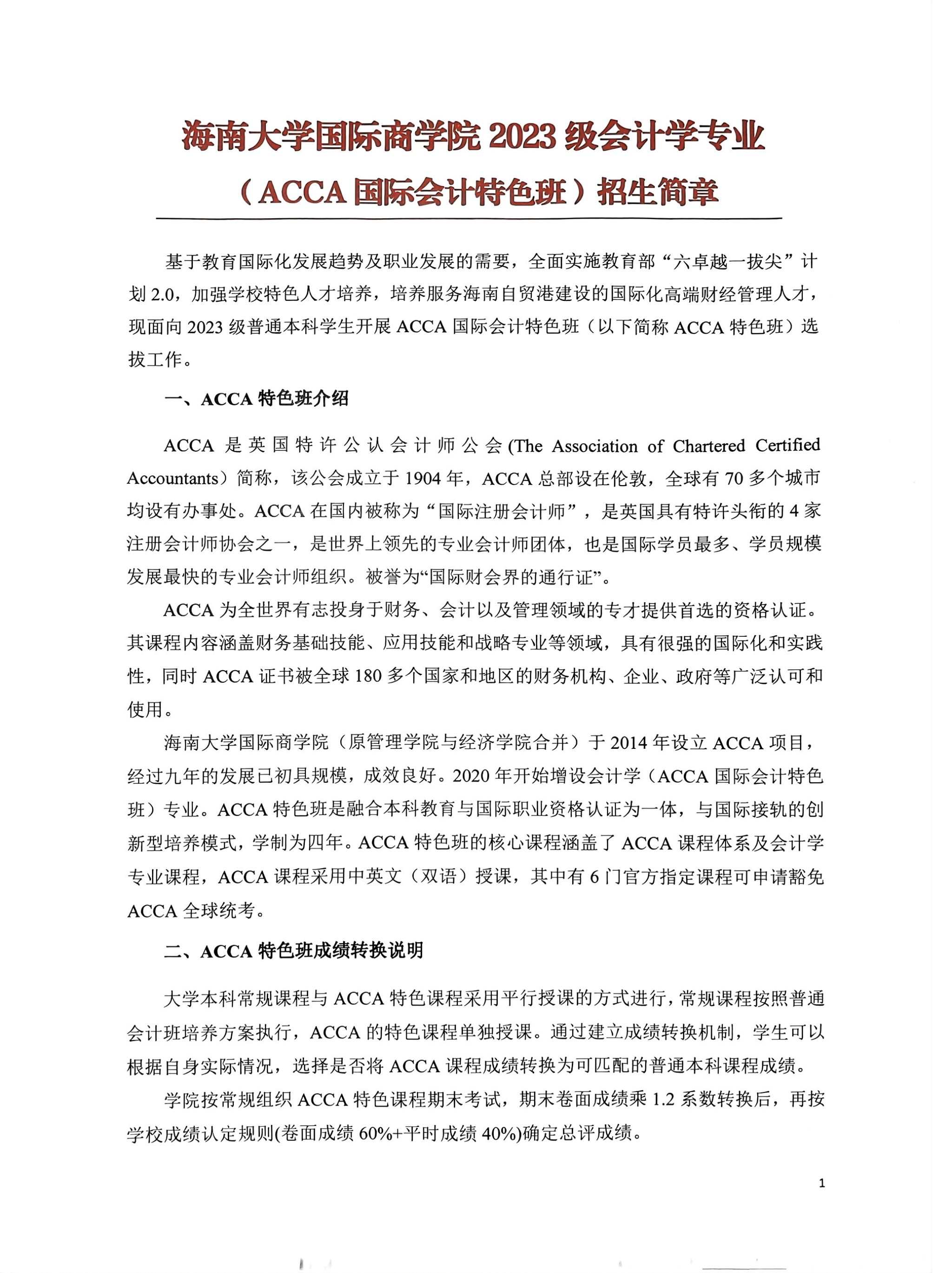 今日看料 2023级会计学专业(ACCA国际会计特色班)招生简章