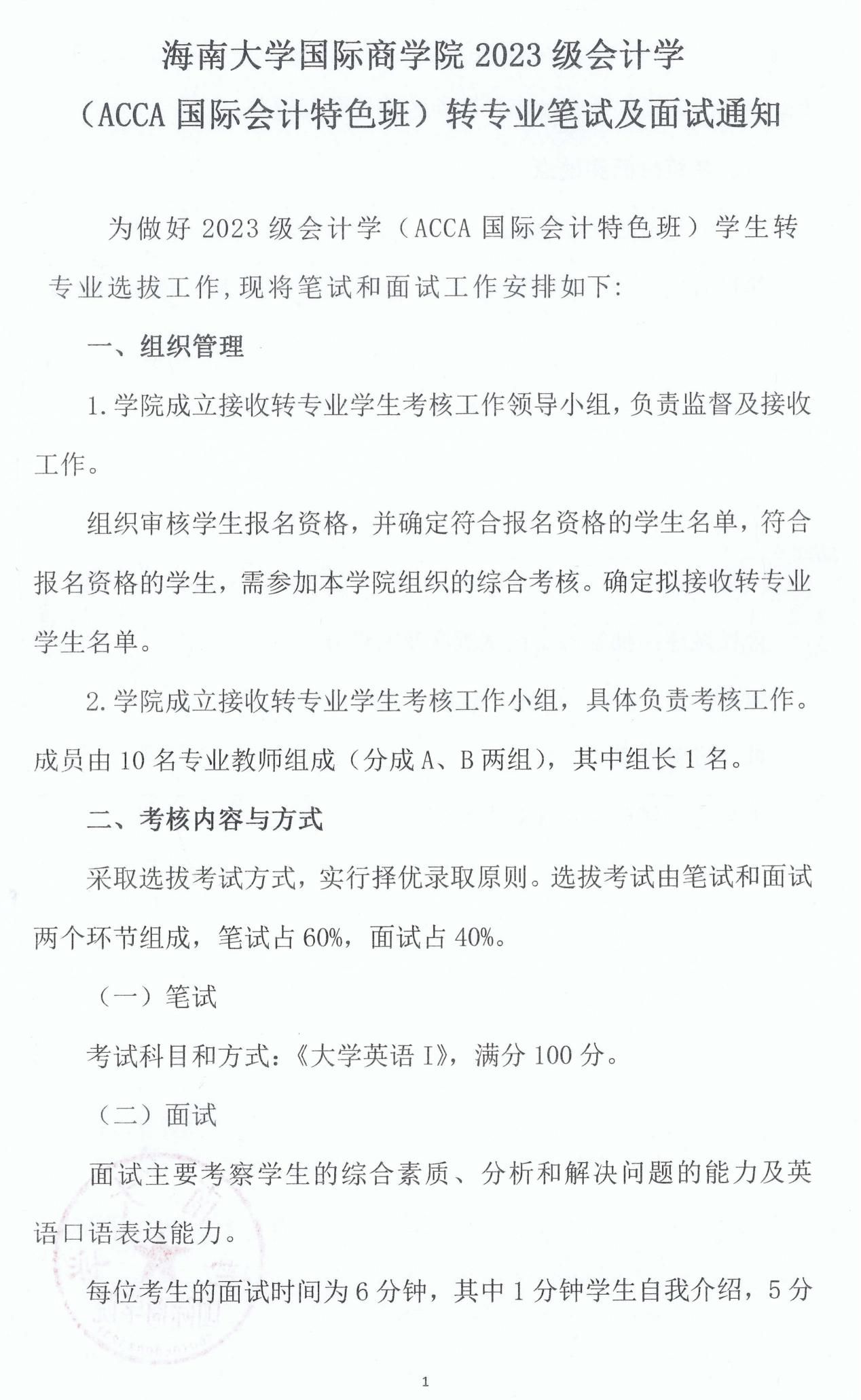今日看料 2023级会计学 (ACCA国际会计特色班)转专业笔试及面试通知