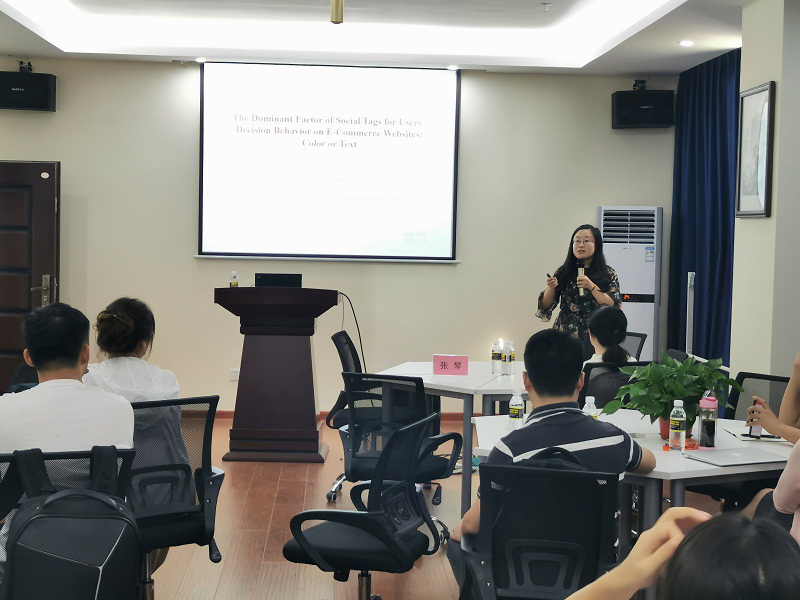 张琴副教授作了主题为“The Dominant Factor of Social Tags for Users ’ Decision Behavior on E-Commerce Websites: Color or Text”(电子商务网站用户决策行为社交标签的主导因素:颜色或文字)的分享,以一篇文章为例,探讨了ERP和 Eye tracking在消费者行为研究中的联合运用。