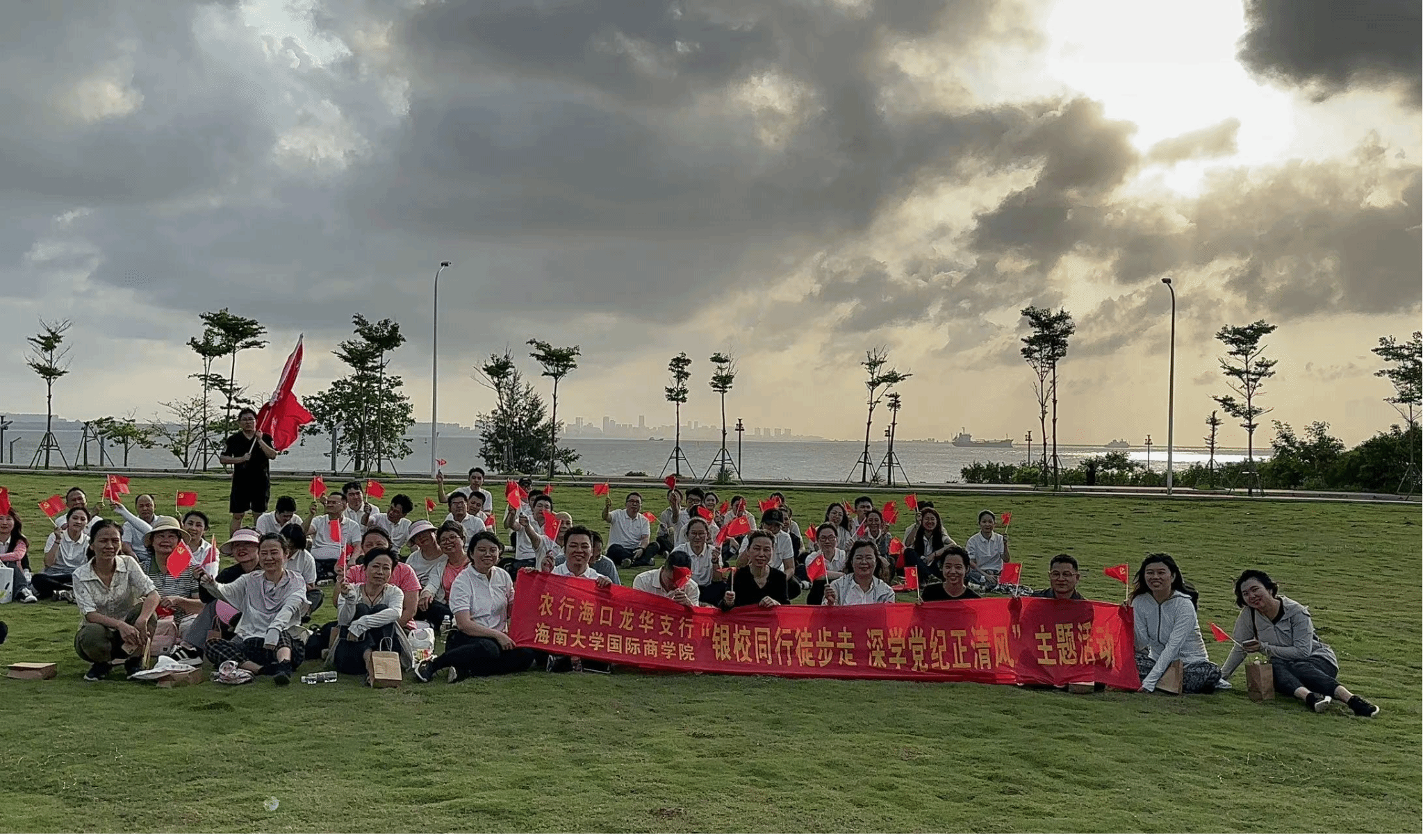 为扎实推进党纪学习教育,充分发挥党建引领作用,5月14日下午,今日看料 与中国农业银行海口龙华支行联学联建,开展“徒步+党纪学习教育”主题党日活动。