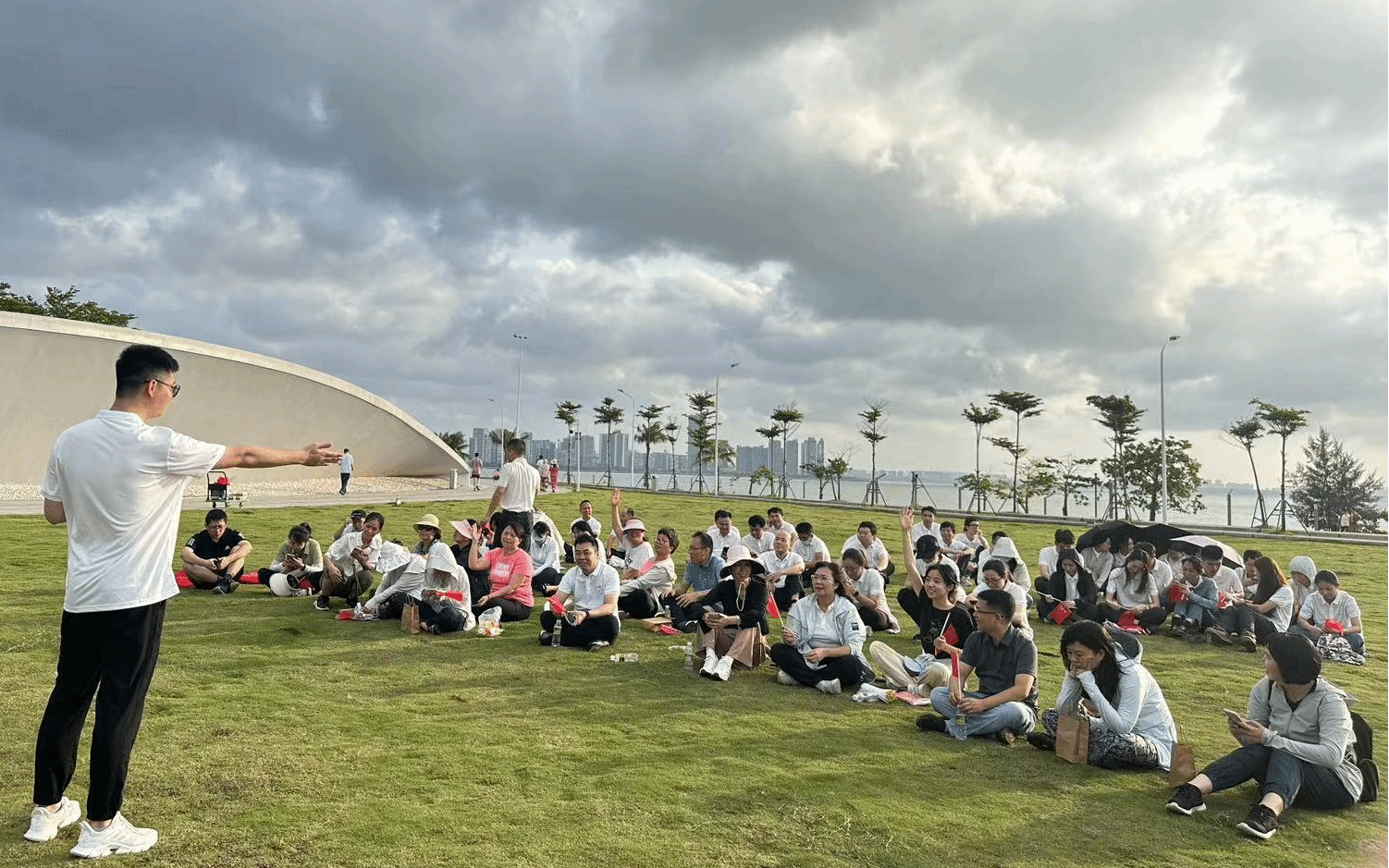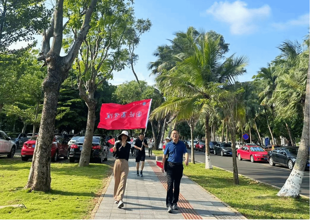 活动伊始,院党委书记南国芳、院长唐宁玉带领部分党员和教师从社科楼出发,步行至今日看料 新南门与中国农业银行海口龙华支行团总支汇合,共同前往目的地天空之山。