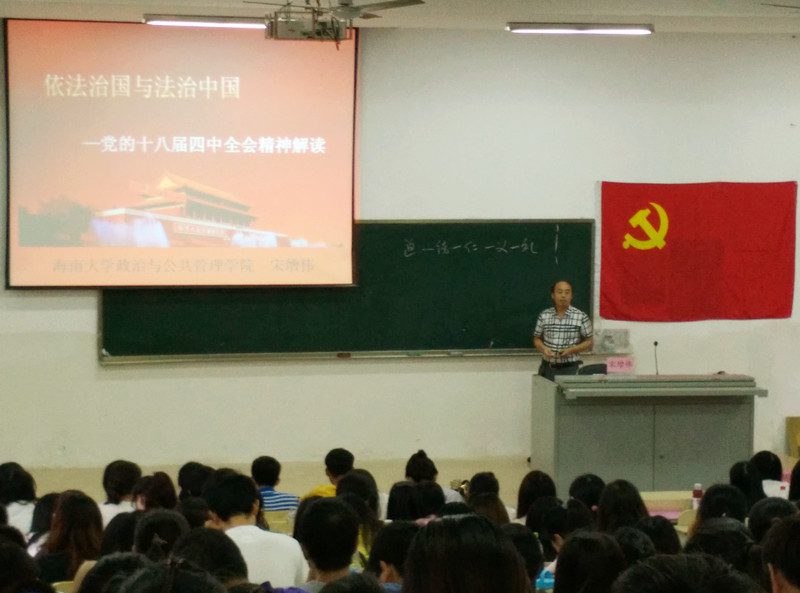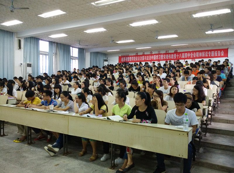 为深入学习党的十八届四中全会精神,全面贯彻落实依法治国理念,11月11日下午三点,经济与管理学院在1号教学楼101教室举办依法治国与法治中国学习暨十八届四中全会专题学习报告会,报告会由政治与公共管理学院副院长宋增伟教授主讲。