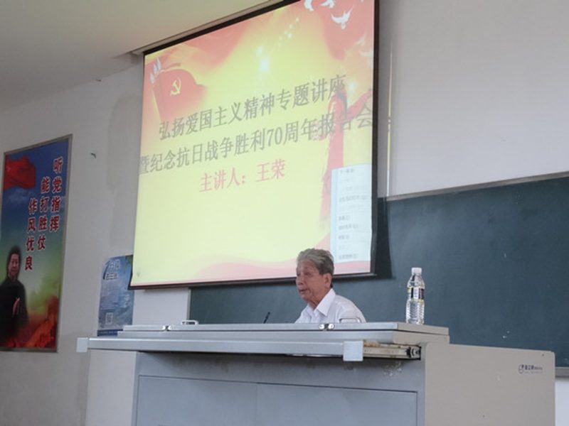 党委系统党支部书记王荣老师主讲,学院学生党建领导小组全体成员、各党支部委员以及第十二期入党培养对象全体成员参会,会议由学院学工办张乃脆老师主持。 报告会中,84岁高龄的王荣老师,向广大同学详细介绍了作为世界反法西斯战争的主战场之一的中国战场中涌现的可歌可泣的英勇事迹,讲述了佟麟阁、张自忠等多位抗日战争中的人民英雄以及淞沪战争、桂林保卫战等多场战役中军民齐心奋战的惨烈战况。每讲到中华民族的苦难史,年过八旬的王老总是情绪高昂。“战死者光荣,偷生者可耻”,在提到抗日战争时期的亲身经历时的愤怒以及抗战胜利时的国难家仇一朝雪耻的痛快淋漓都深深地震撼了在场的每一位同学。 王荣老师对学生党员们提出要求,他说作为祖国的未来,学生党员们应了解中国共产党是如何肩负起历史重任并以大无畏的决心和信心取得8年艰苦卓绝的抗战胜利,王老对中共在抗战中的中流砥柱作用和国民党军队在正面战场发挥的巨大作用,都给予了充分的肯定和高度的评价。王荣老师最后号召大家更好地继承和发扬光荣革命传统,坚定理想信念,更加注重学习与实践的结合,提升投身社会主义现代化建设,肩负起时代赋予的重任。 (编辑:张乃脆 文/席鸣岐 摄/朱春艳)